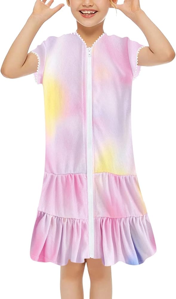 Kids Toddler Little Girl Swim Cover Up Towel Swimsuit Zip Up Bathing Suit Robe Beach Cover Up Girls Cotton Dress Size 5