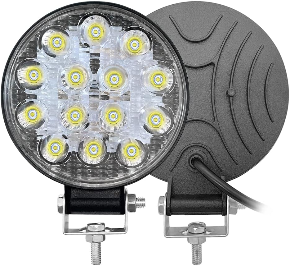 2 قطعة ضوء عمل LED دائري، 42 وات 4.3 بوصة أغطية إضاءة LED للقيادة على شريط السقف، بقعة مصابيح ضباب مقاومة للماء فائقة السطوع، عالمية للشاحنات، الطرق الوعرة، السيارة، ATV، SUV، القارب
