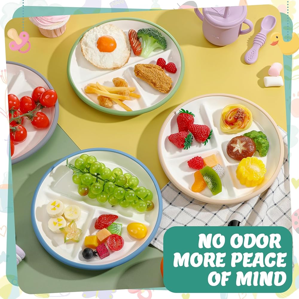 Our toddler plates can be paired with different nutritious foods, suitable for kids of different ages to enjoy and use. Your kids will like to eat with it, and it also helps them build independence and learn to feed themselves