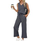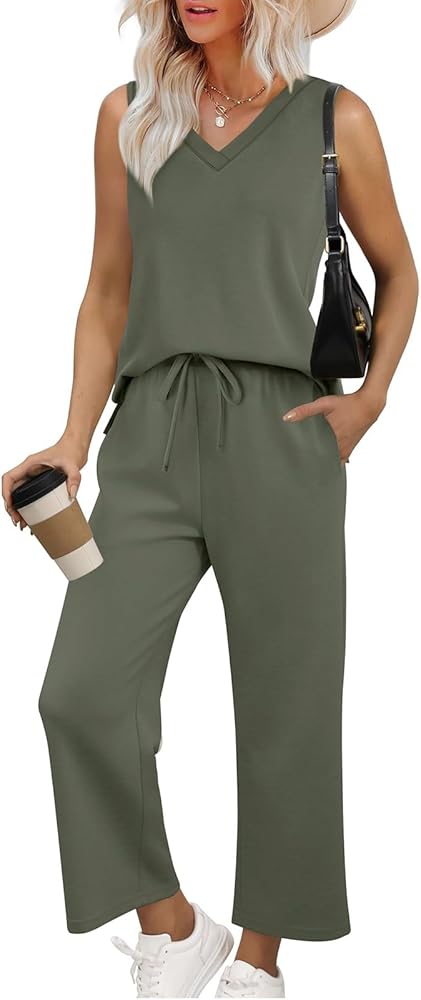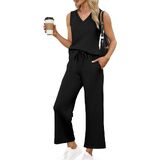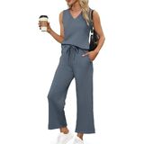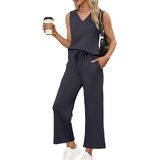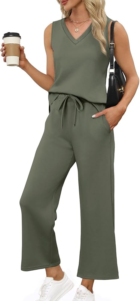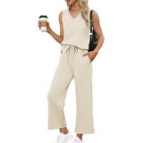 Modern tailoring, slimming aesthetics: Minimalist v neck sleeveless top with high-waisted wide-leg pants, naturally lifting the hips to modify the waist and hip curves. Adjustable drawstring waist adaptable to a variety of body shapes, wide-leg pants cleverly lengthen the proportion of legs, easy to create a lazy sense of seniority.
