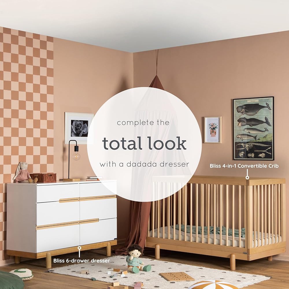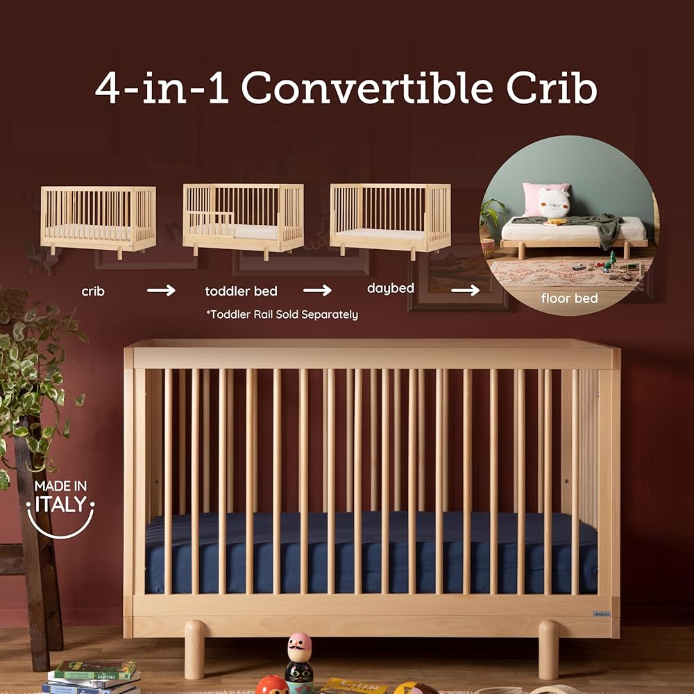 Dadada Baby Bliss 4-in-1 قابلة للتحويل سريرًا قابلاً للتحويل إلى سرير وأرضي صغير-مصنوع في إيطاليا ، معتمد من Greenguard Gold ، وإنهاء آمن للأطفال ، وخشب الزان المستدام ، والتصميم الحديث ، و 4 آفاق قابلة للتعديل (طبيعي)