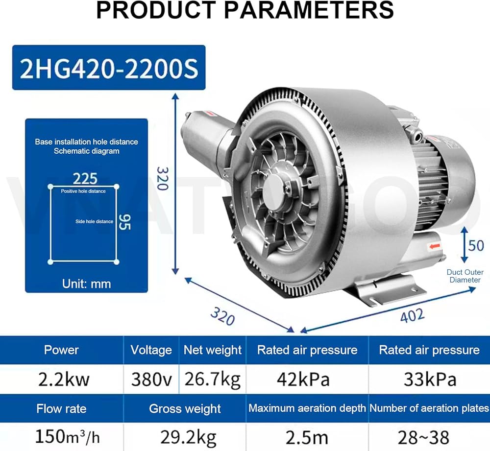 The Dual-Stage Vortex High-Pressure Blower is a versatile industrial-grade solution engineered for demanding environments, from aquarium oxygenation to factory ventilation. Combining vacuum air pump and regenerative blower functionalities in one compact unit, this vortex ring blower effortlessly switches between blowing and suction modes, making it for fish pond aeration, workshop airflow management, and industrial air circulation.