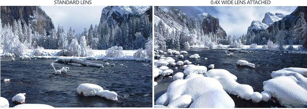 • Mount: مسامير مباشرة على مقدمة العدسة الموجودة في Camcorders مما يجعل العدسة الأصلية أوسع بكثير وقادرة على مشاهدة المزيد في الإطار.