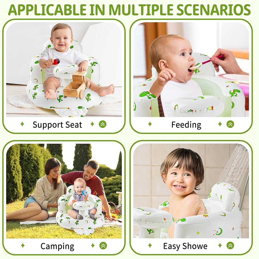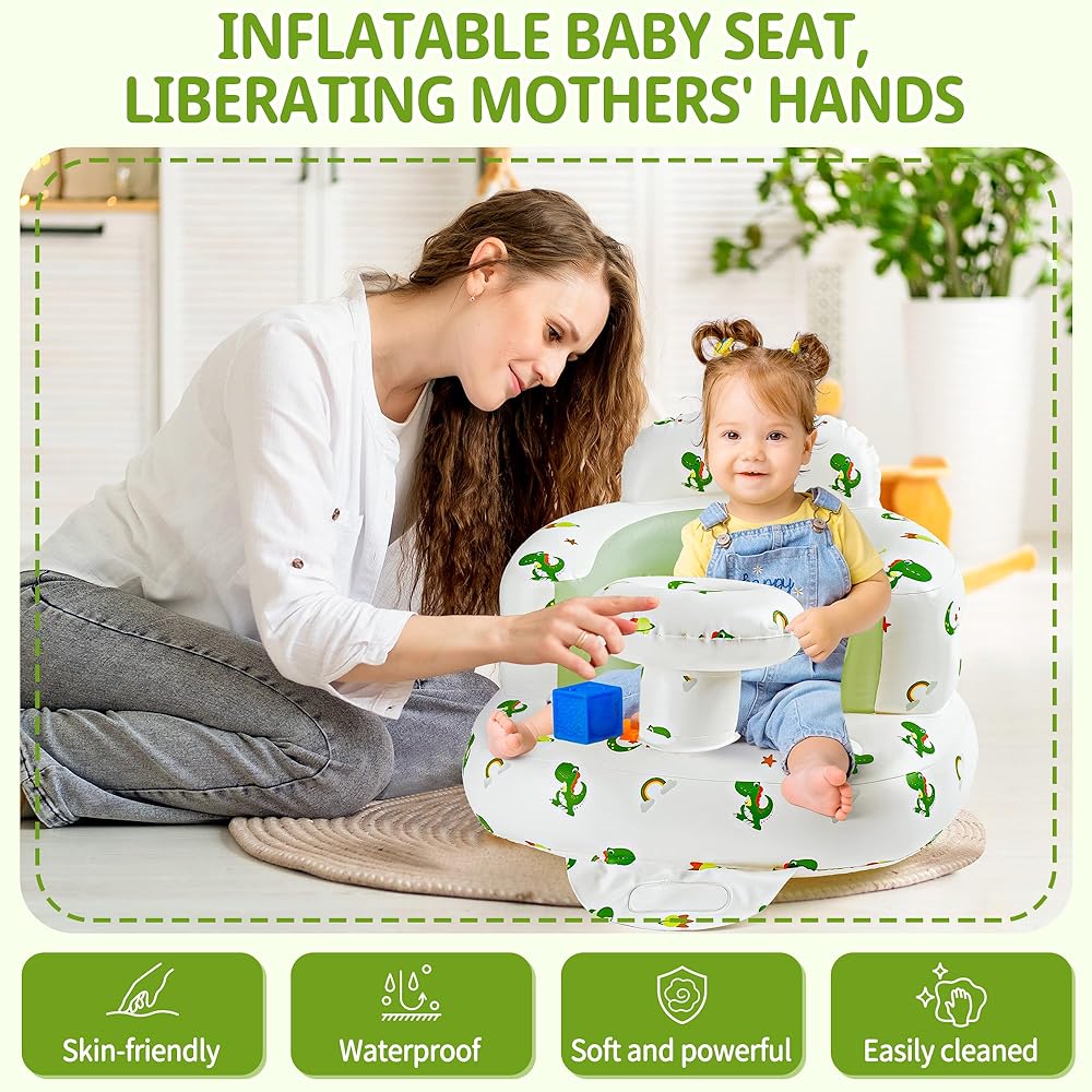 • High-quality Fabrics: Baby chair is made of high quality non-toxic PVC material, which is durable, with anti-leakage design. It's odorless and skin-friendly. The infant blow-up chair can be washed with water. It dries immediately after being wiped, which is convenient for cleaning.