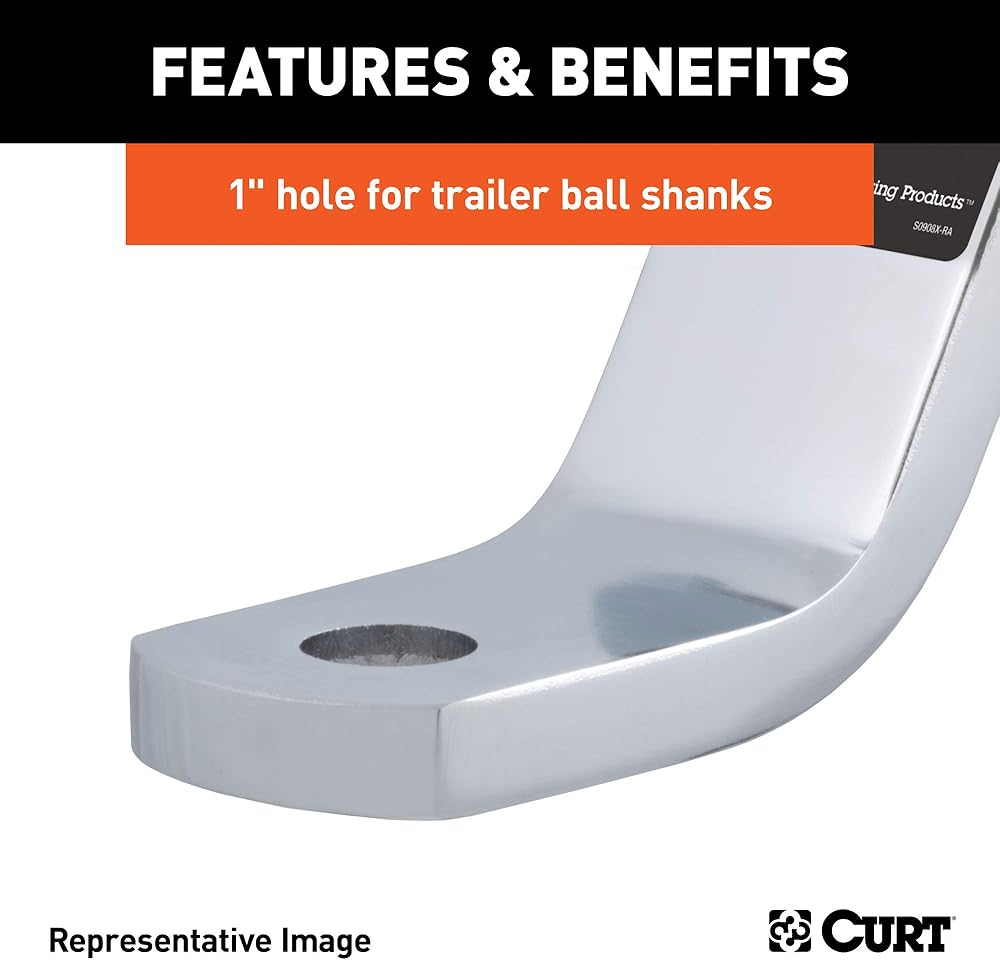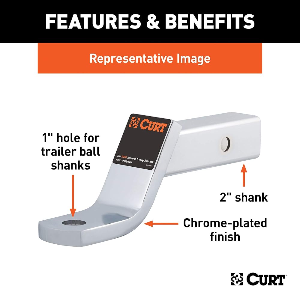 CURT class 3, or standard-duty, ball mounts are a step up from classes 1 and 2. They feature a 2" x 2" shank and have a higher weight capacity for towing heavy-duty trailers, including utility trailers, boat trailers, campers, single-horse livestock trailers and most recreational vehicle trailers. With class 3 trailer hitches being the most common type of trailer hitch for pickup trucks and SUVs, the class 3 ball mount, by association, is an excellent complement to this trailer hitch and these larger vehicles (NOTE: Never exceed the lowest weight capacity of any towing component; i.e. the vehicle, hitch, trailer, etc).This particular class 3 ball mount has a gross trailer weight capacity of 7,500 lbs. and a tongue weight capacity of 750 lbs. It features a length of 8-1/4", a drop of 2" and a possible rise of 3/4". Class 3 ball mounts are CNC-formed and robotically welded to ensure unwavering precision and dependable strength in each and every unit. We mechanically descale each one to provide a smooth surface for a long-lasting finish. This class 3 ball mount comes with a bright chrome-plated finish to protect against corrosion, scratches, UV damage and more to give it the thick skin it needs to face the road ahead.