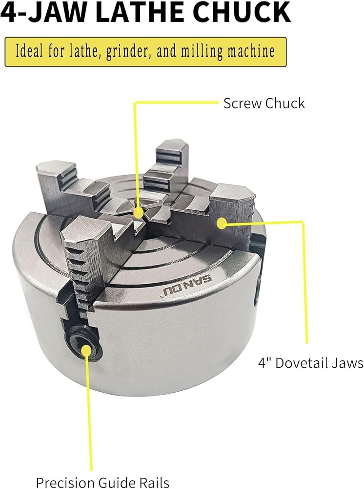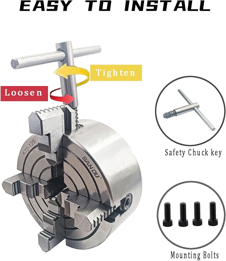 قوة التثبيت العالية: قوة التثبيت 4 الفك قوية بما يكفي لضمان استقرار ودقة الشغل أثناء عملية الدوران