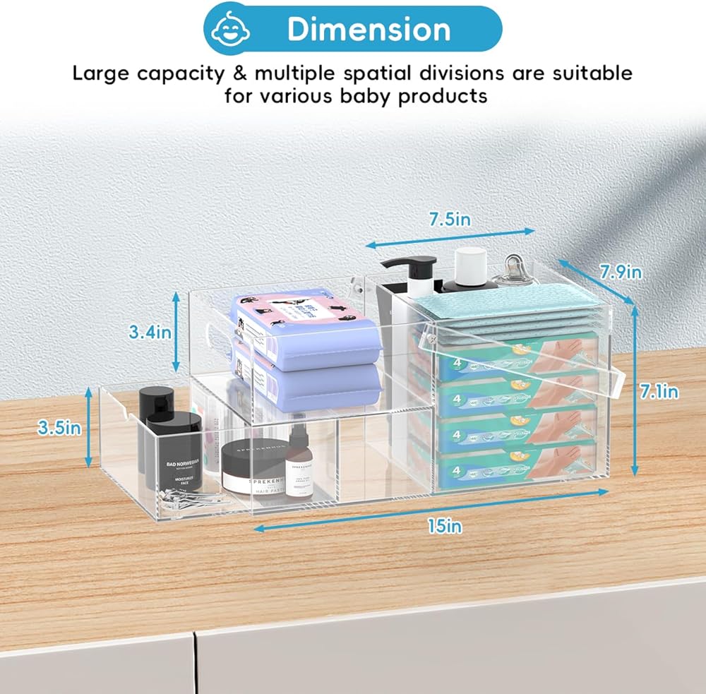 مساحة وفيرة ومنظمة: قياس 17.2 × 8.7 × 5.9 بوصات ، تحتوي مقصوراتها الستة على ثروة من عناصر الأطفال. تناسب المنطقة المركزية الكثير من الحفاضات ، في حين أن الجيوب الجانبية مثالية للمناديل والمساحيق والإكسسوارات ، مع الحفاظ على كل شيء مرتبة.
