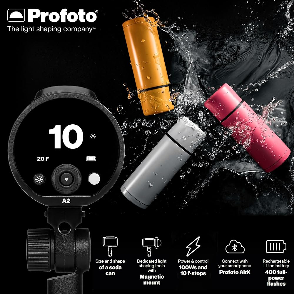 The Profoto A2 is small, lightweight, and portable - about the size of a regular soda can, making it the smallest ever monolight. The compact size means this is a light that you really can bring anywhere and everywhere. Throw it in your bag or a jacket pocket, and you're ready to make the most of whatever location you might find yourself in; it's ideal when space is at a premium and time is short. Like all Profoto lights, the A2 is easy and intuitive to use; you'll go from box to first flash in record time. Yes, it comes with an instruction manual, and no, you probably won't have to bother reading it. With AirX connectivity built-in, you can use the A2 as a part of a more extensive Profoto lighting system, and you can shoot with any camera, including a smartphone. In addition, enjoy the freedom of choosing where you adjust all settings. Either via the user-friendly large display on the flash or the Profoto Control app - it's up to you. The creative possibilities become almost endless when you combine the A2 with the Profoto Clic System - a series of light shaping tools bespoke to A-series flashes. Factor in the Clic OCF Adapter II, and then suddenly Profoto's entire range of OCF light shaping tools are available to use as well. More than anything else, this is a creative tool. It exists to help the ambitious photographer capture striking and beautiful images anywhere, anytime. Making the Profoto A2 a must-have light for image creators who want to push the limits of what's possible on location.