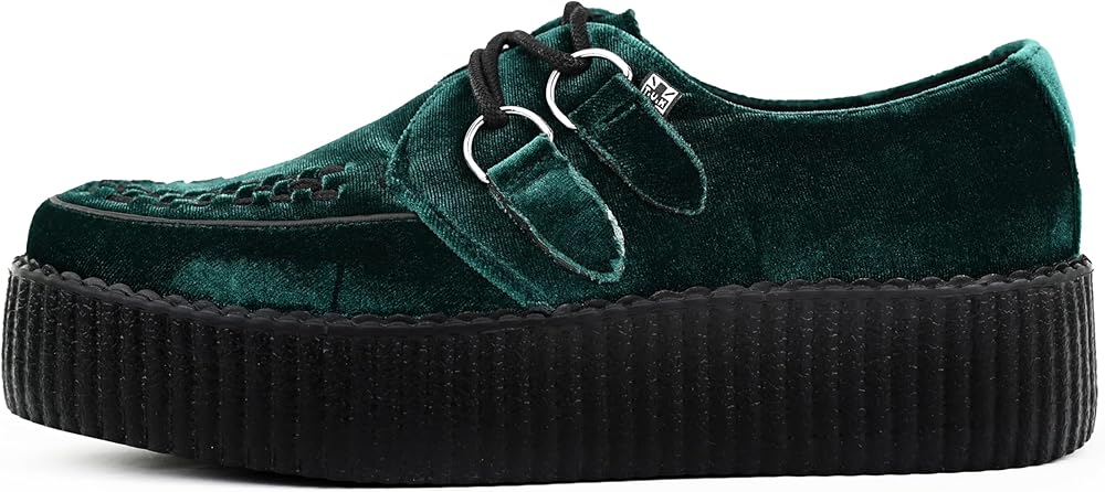 • تصميم الزواحف الأيقوني: T.U.K. تتميز Viva Mondo Creepers للنساء والرجال بتصميم زاحف كلاسيكي مع نعل منصة سميكة تضيف الارتفاع والأناقة إلى أي جماعة. من المؤكد أن المتداخلة الجريئة والأسود المنسوجة ، وحلقات D Silver Metal D ، ومنصة مكتنزة هي التي ستدير الرؤوس.