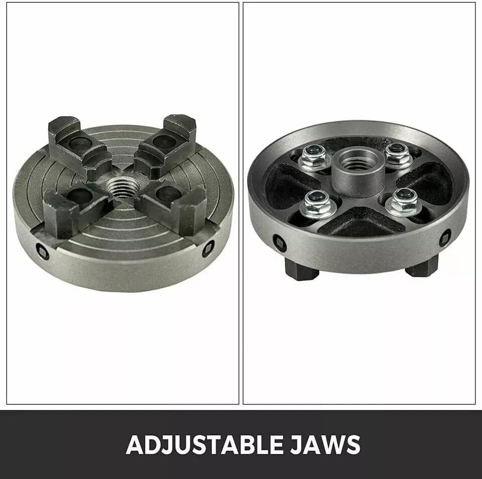 【CLAMPING CAPACITY RANGE】- Each jaw can be adjusted separately to center with superior gripping force. Front Jaw Clamping Range: 0.5-2.0inch (12-50mm). Back Jaw Clamping Range: 1.5-5.1inch (40-130mm).