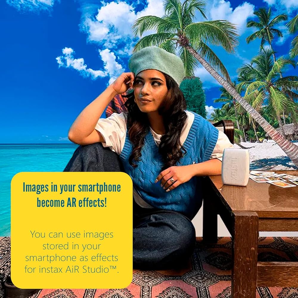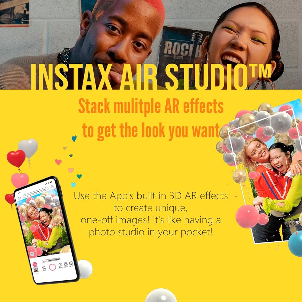 • Customize Your Way: With a range of unique backgrounds like balloons, hearts, and leafy garlands, add animated effects to your mini photos using the Instax AiR Studio App feature with 3D effects