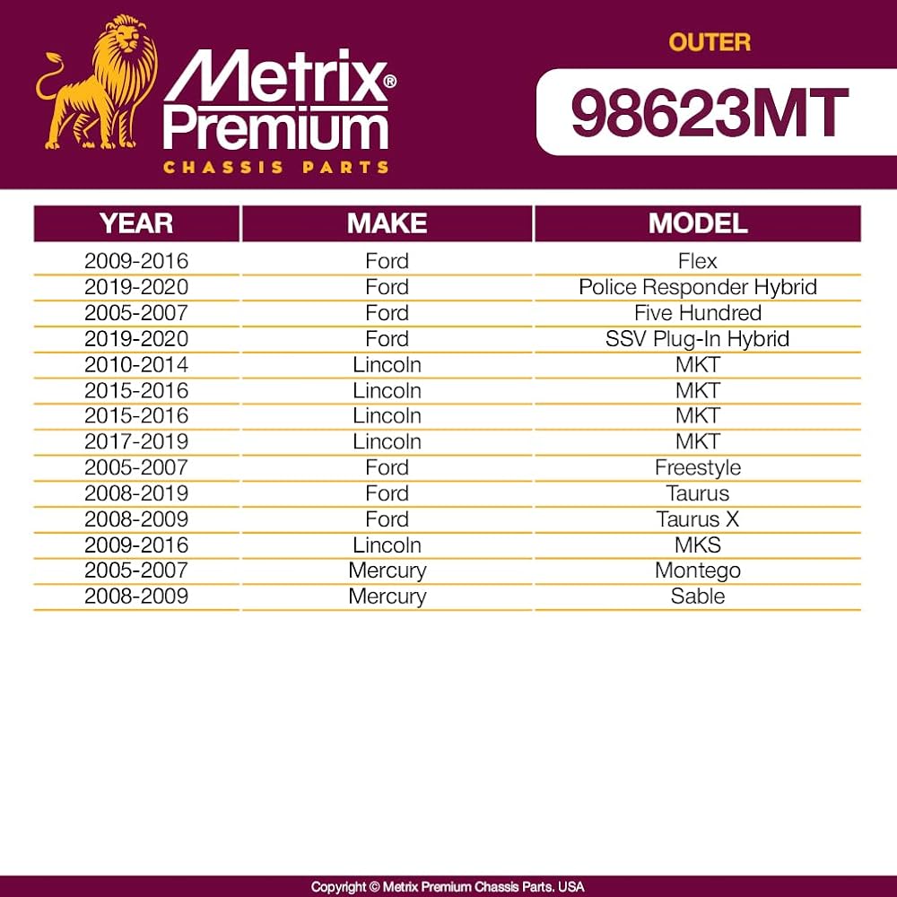 تم تصميم أجزاء التوجيه والتعليق الممتازة من ميتريكس وتصميمها واختبارها وتصنيعها لتلبية أو تجاوز جودة الشركة المصنعة الأصلية. تخضع الأجزاء لاختبارات قوية وتصنيع صارم لضمان الأداء الأمثل. صُنع في تركيا، وتم تجميعه في الولايات المتحدة.