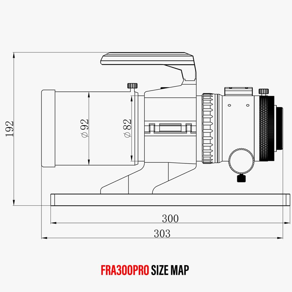 • التوصيل الموسع: يأتي Fra300 Pro أيضًا مع مقبض متعدد الوظائف ولوحة توافق على طراز Vixen 300 ملم ، والتي يمكن توصيلها مباشرة بمختلف حوامل وملحقات ، يمكن أيضًا توصيل المقبض متعدد الوظائف بقاعدة مكتشف على غرار Vixen. تتيح لوحة توابل 300 مم للالتحاق بالتوازن على الحامل.