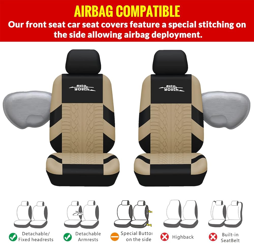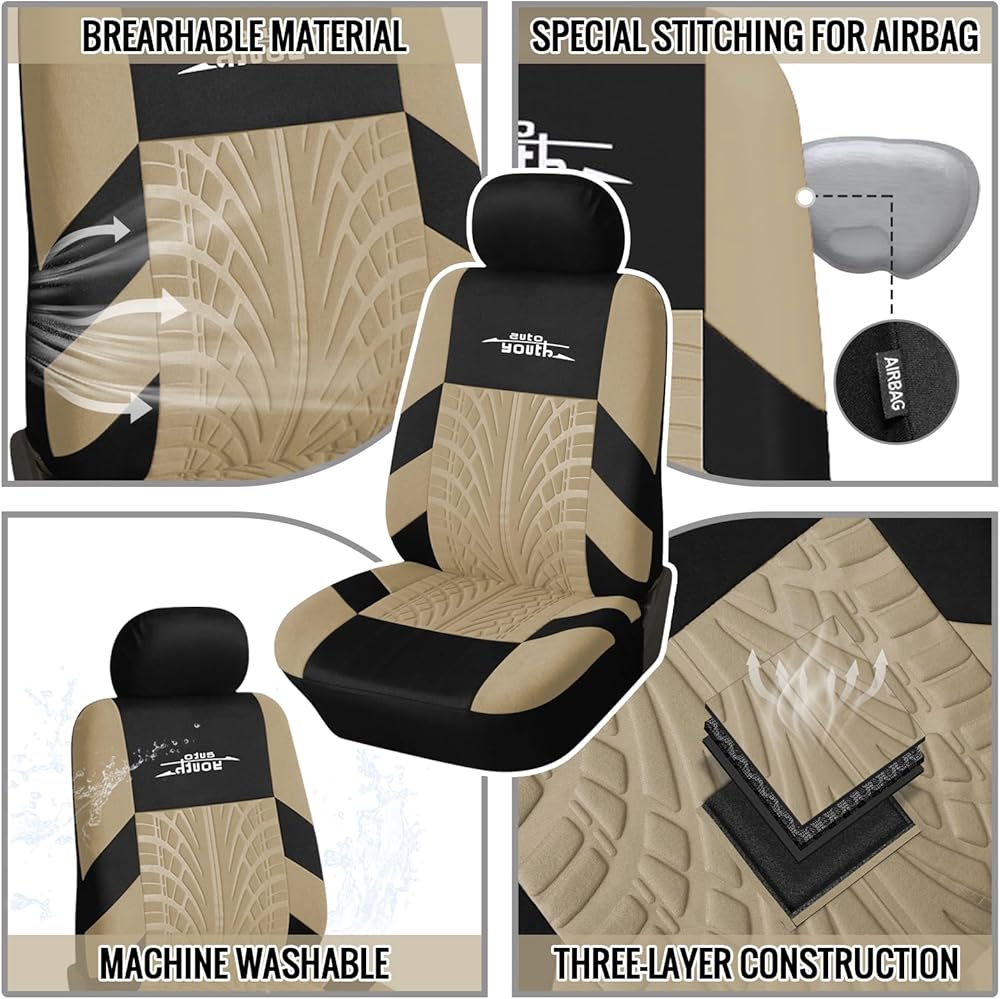 أغطية المقاعد من العلامة التجارية اوتو يوث يمكنها إطالة عمر سيارتك والحفاظ على مقاعدك تبدو جديدة ونظيفة. تحديث مظهر المقاعد القديمة أو المتسخة. يحمي من الانسكابات والبقع والبهتان والأوساخ وشعر الحيوانات الأليفة ويحمي مقاعد سيارتك من التآكل والتمزق.
