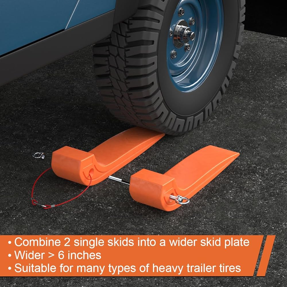 اي-اس دي اس احذية تزلج اطارات لشاحنة السحب مكونة من 4 قطع، احذية تزلج شديدة التحمل لشاحنة نقل السيارات، سرير مسطح، سلامة حاملة هادم التراجع، تزلج اطارات ريكماستر المتشابكة للتحرك (برتقالي)