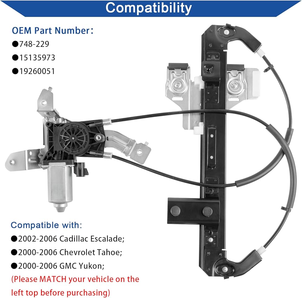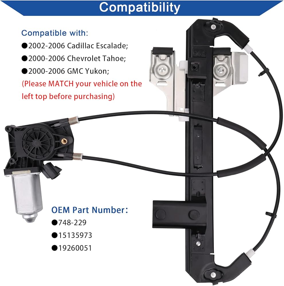 • ✈【التوافق】منظم رفع النوافذ وجمعية المحرك المتوافقة مع كاديلاك إسكالاد 2002-2006 / Chevy Tahoe 2000-2006 / GMC Yukon 2000-2006.