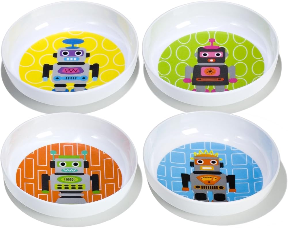 French Bull continues to be ahead of the curve in reinterpreting everyday staples with a fresh look for a contemporary lifestyle. These Rock Star plates for kids like many of their other products, are made of 100 -percent melamine. Melamine is resistant to high heat, it's shatterproof, and an ideal ground for pattern. Plus, melamine does not easily absorb fluids from food, which helps you avoid contaminating your food with harmful bacteria - a leading cause of illness and food poisoning. The durability and functionality of the material is perfect for indoor or outdoor entertaining, everyday use and is completely safe for children. Their popular Rock Stars pattern plates are designed for fun and coordinate with the Rock Stars Bowl and Cup sets. Set includes four different animals; a singer, a guitar player, a keyboard player, and a drummer, on a colorful background. They feature a glazed surface that resists scratches. Top rack dishwasher safe. French Bull - reinterpreting everyday staples with a fresh, modern spin. Set of 4.