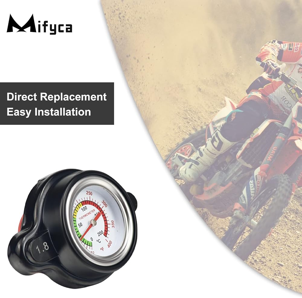 غطاء رادياتير عالي الضغط 1.8 بار 25.6 باوند لكل انش مربع مع مقياس درجة الحرارة من ميفيكا مناسب لهوندا وكاوا ساكي وسوز-اوكي وياماها وبول اريس وهاسك-فارنا ودراجات كيه تي ام ايه تي في والدراجات النارية