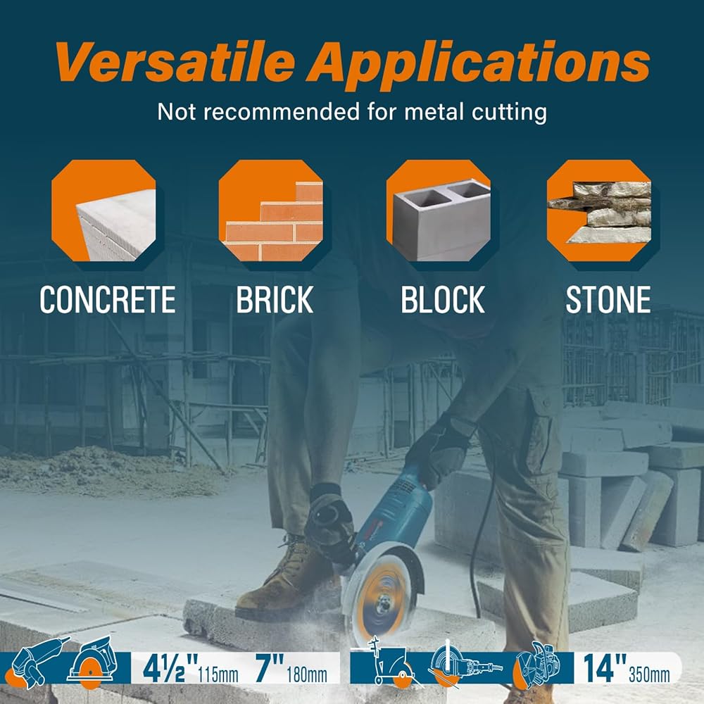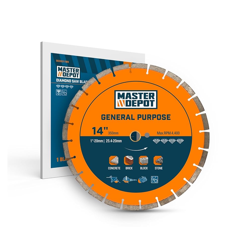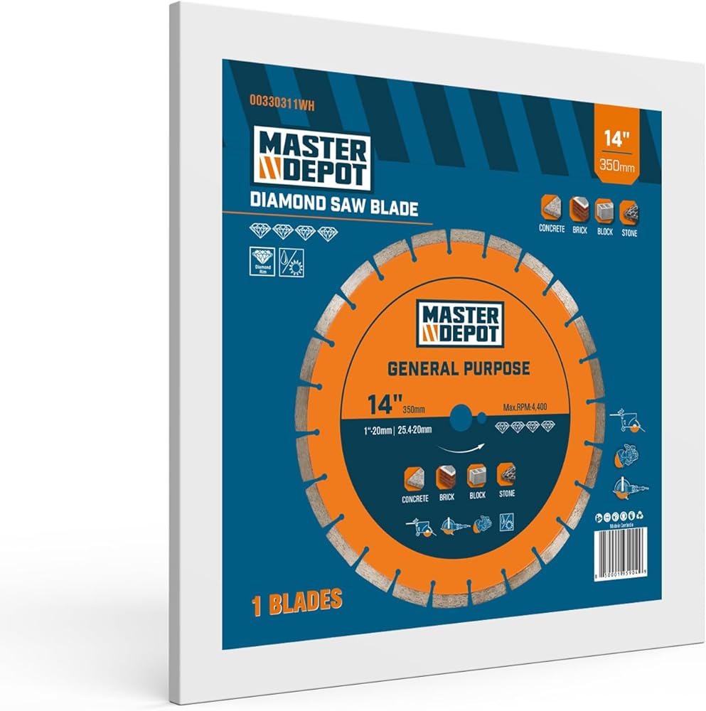 • حافة مجزأة: تم إنشاؤها مع الماس الفني وجسم فولاذي ، تم تصميم شفرة الماس Depot Master Depot للقطع السريع والعدواني للخرسانة والبناء والجرانيت والخرسانة والحجر الرملي والمزيد.