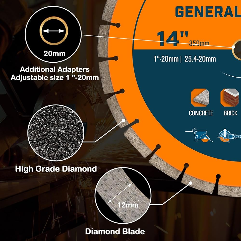 14 بوصة مجزأة شفرة الماس مع ثقب arbor 1 "-7/8" ، وتطبيقات القطع الرطبة الجافة في الخرسانة ، والبصير ، والبناء ، والحجر ، والجرانيت