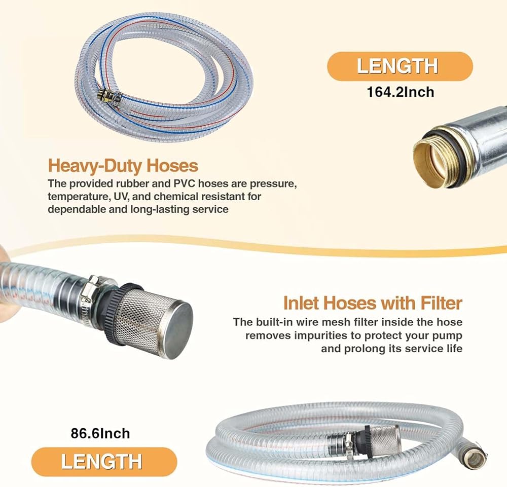 【محمولة وصغيرة الحجم】: تم تصميم الحجم الصغير والتركيب الموثوق والبسيط للمضخة والخراطيم والفوهة لتكون محمولة مما يجعلها سهلة الحمل والنقل، في حين أن المجموعة بأكملها صغيرة بما يكفي للتخزين الفعال.