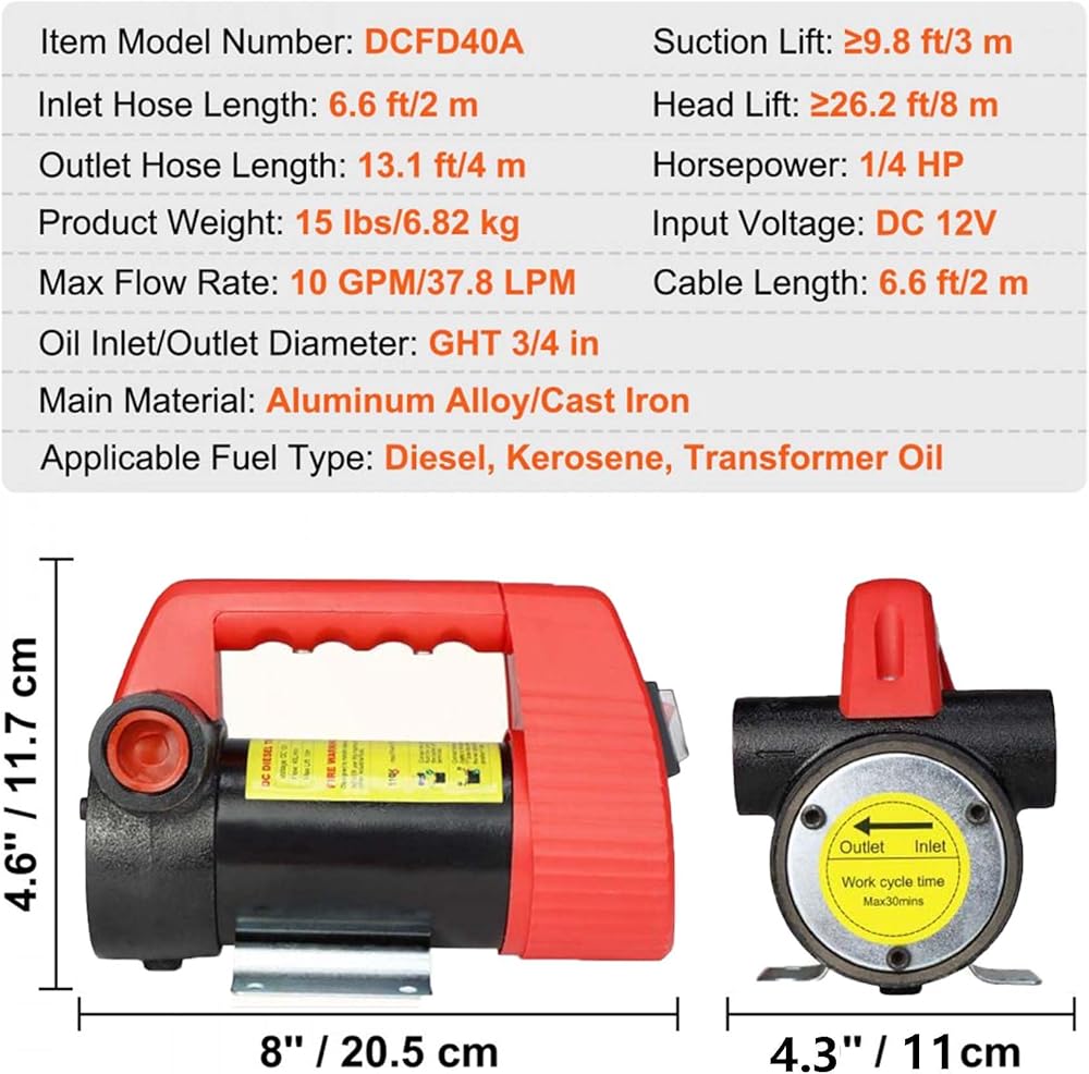 تحتوي مضخة الوقود ذاتية التحضير على مضخة محرك 12 فولت تصل إلى 12 جالون في الدقيقة، أداء احترافي مع نطاق التدفق (GPM) 2.3/3.7؛ أمبير العمل 6.2 أمبير؛ أقصى أمبير 8 امبير؛ الجهد: 12 فولت تيار مستمر؛ الطاقة: 1/10 حصان، تعمل بكفاءة
