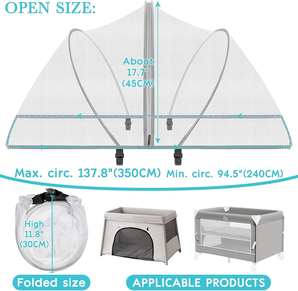 Easy to Carry:The mosquito net for crib features a lightweight and compact design for easy storage and travel, making it the perfect companion for any journey, and the pack and play cover provides a safe space for your little one to play in