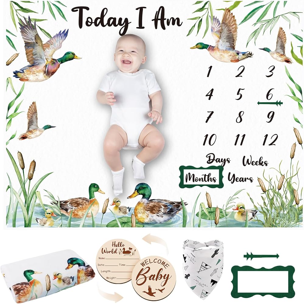 هدية عملية: بطانية معلمية شهرية مصممة مع موضوع Mallard Duck ، بما في ذلك Duck Mom و Duck Baby ، والتي مناسبة لالتقاط لحظات جميلة ، وإضافة لمسة من الجاذبية والمرح ، إنها هدية جيدة ومفيدة للآباء الجدد
