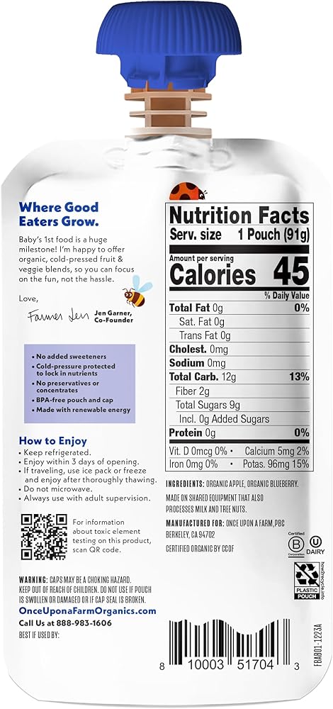 ذات مرة على مزرعة Apple & Blueberry Baby Fruit Blend SGL ، 3.2 أوقية