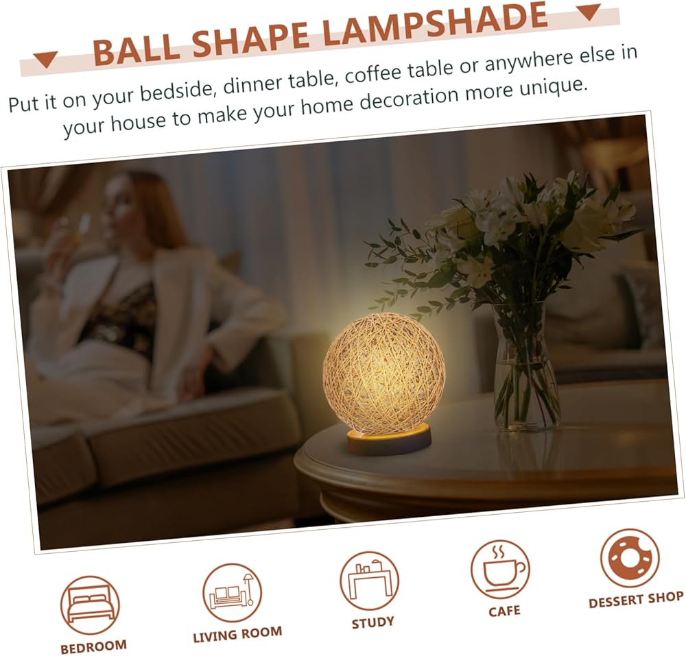 table lamp with wicker shade With ball shape design, it is suitable for living room, bedroom, study, etc.rattan ball lights It can be used to decorate your ceiling and table lamp well.round ball rattan lampshade This item is a woven ceiling hanging lamp shade, made of rattan material for and to use