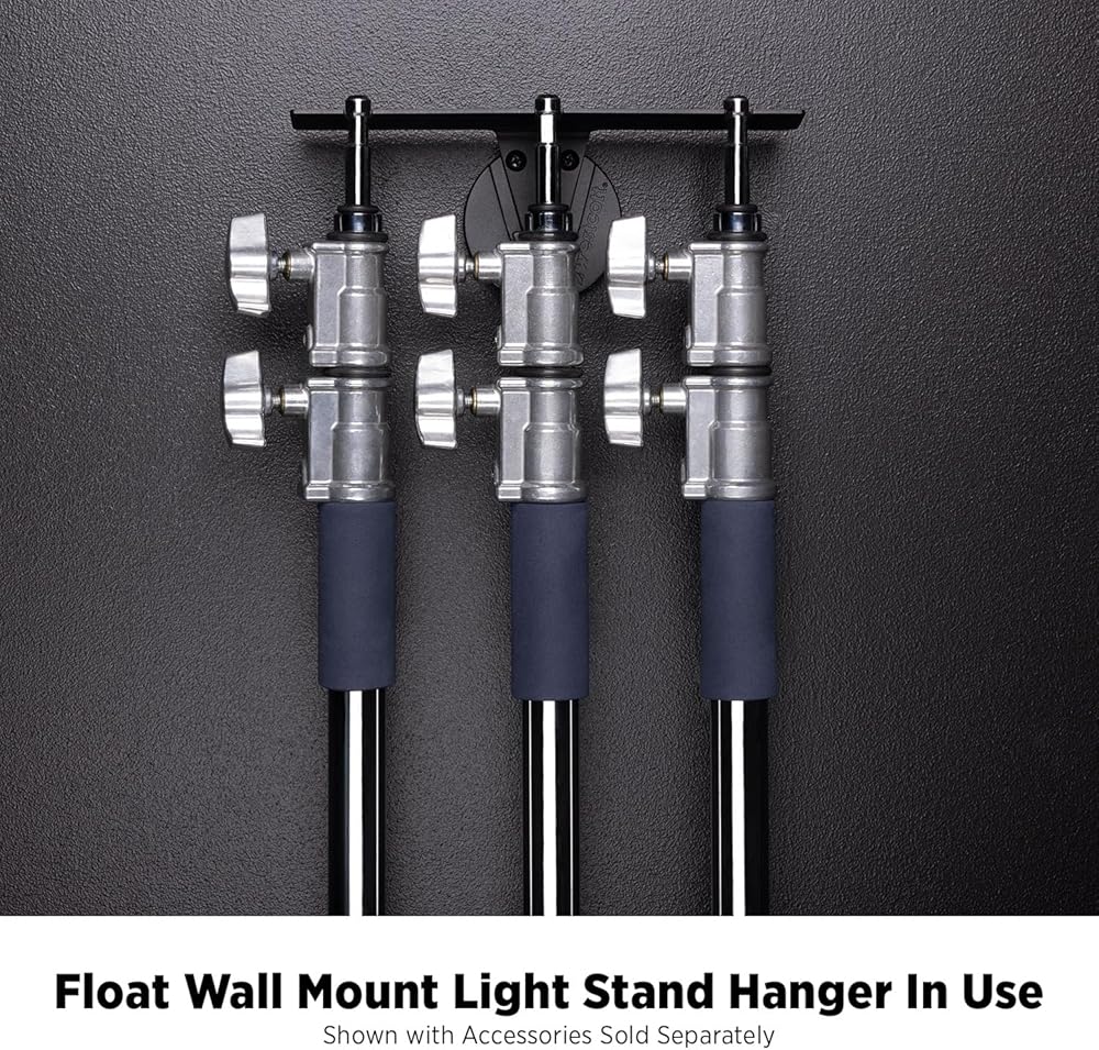 Secure wall mounting solution for up to 3 light stands, c-stands, and other mounting arms (requires Westcott Float Base #1570 sold separately)
