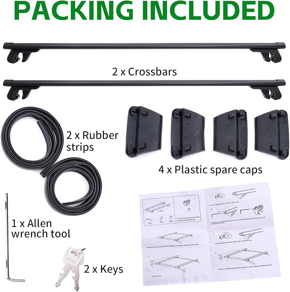MULTI-FUNCTIONAL DESIGN - Easily open the covers at both ends, leather strip reduce the wind resistance and wind noise during driving. The crossbar is equipped with two keys for locking and reinforcement, so you can place luggage and various outdoor equipment more safely.