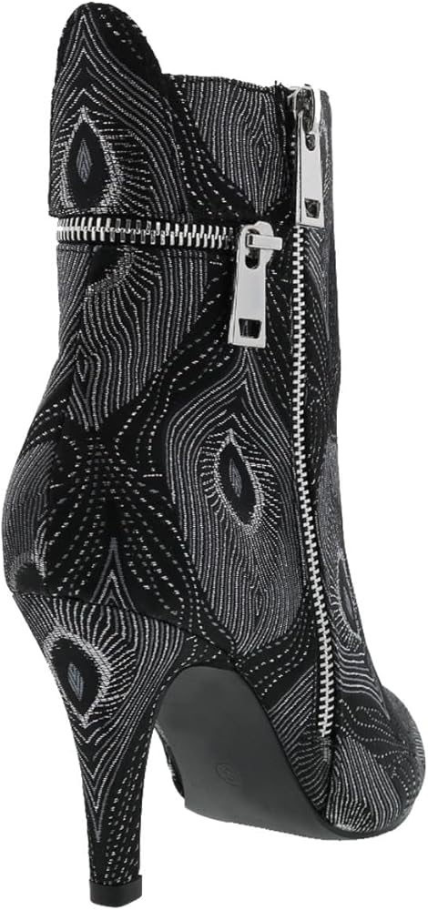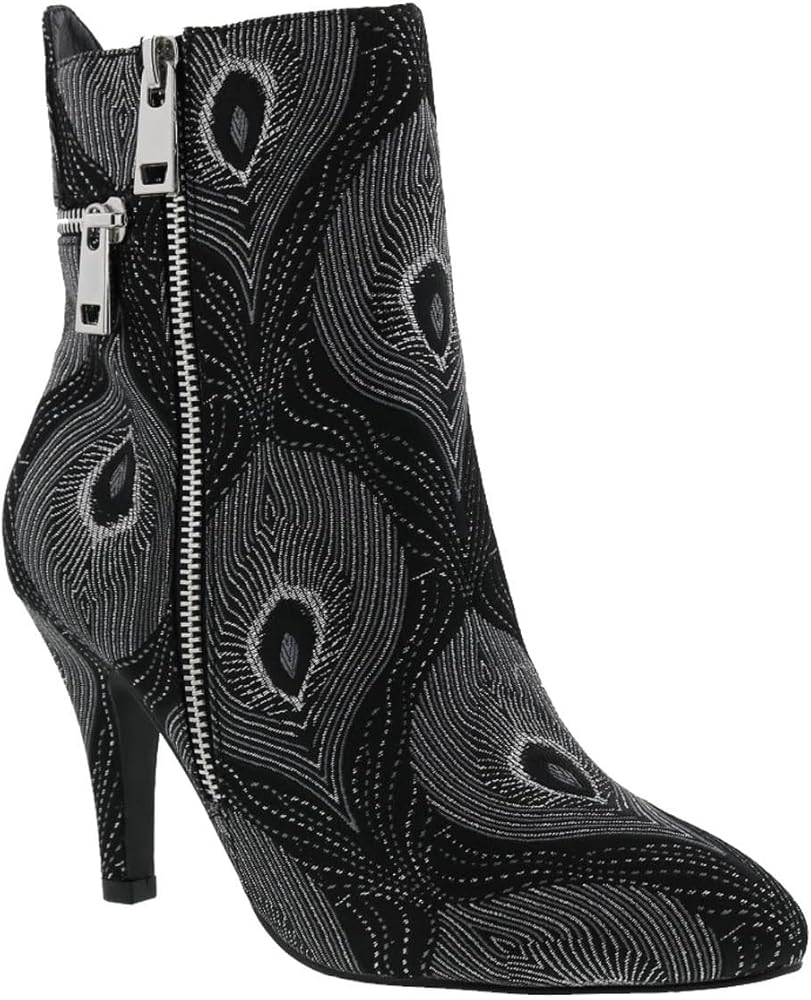 Sassy boots add zip to your wardrobe with decorative horizontal and vertical gold tone zippers at the back and outer side. This Claudette by Bellini dressy ankle boot features a peacock pattern print that zips for easy on and off.