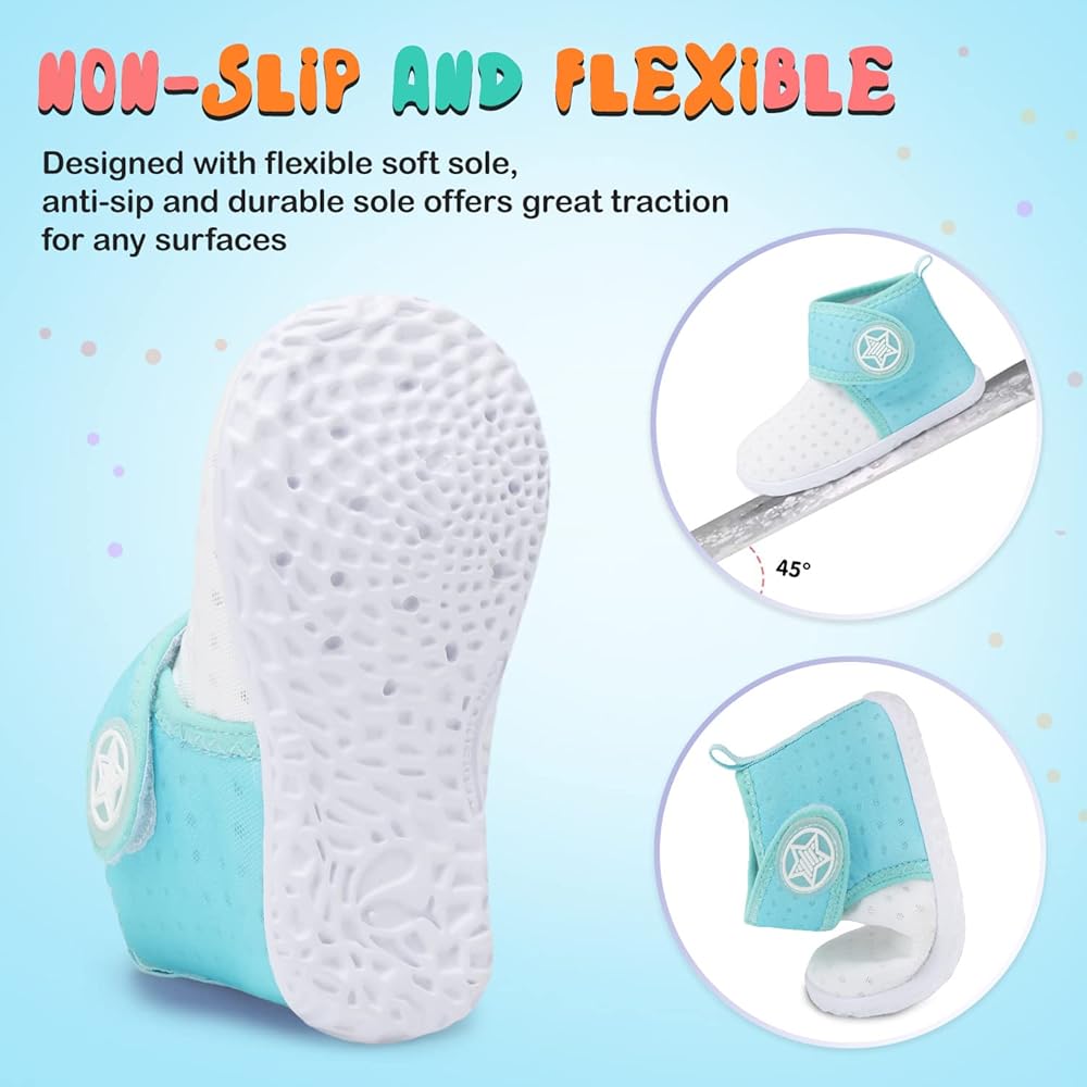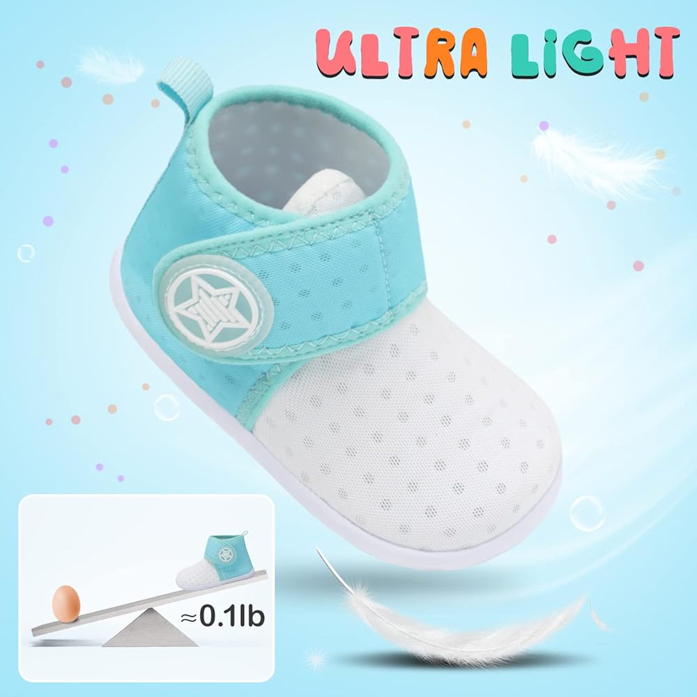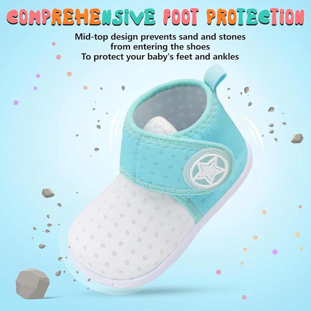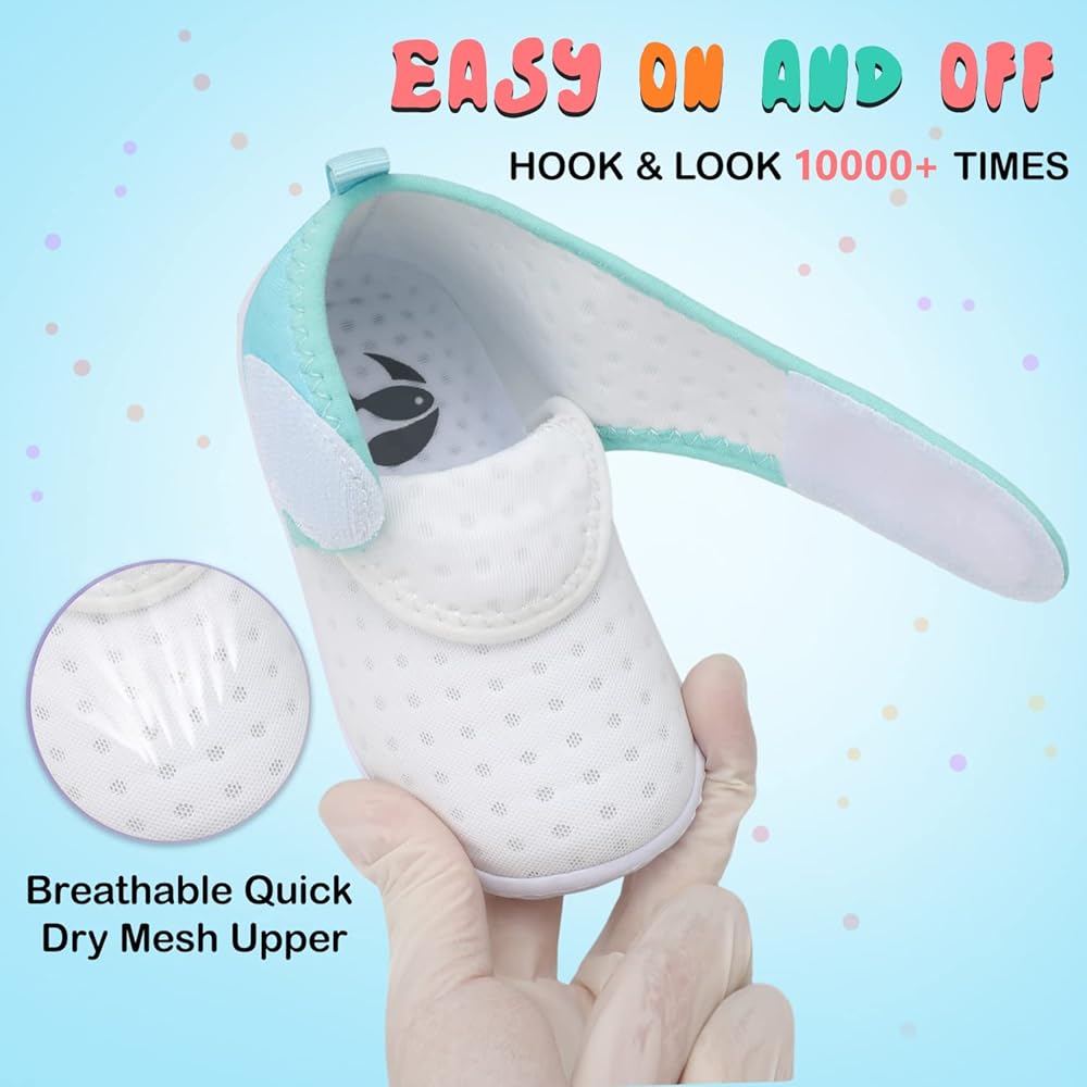 【خفيفة الوزن ومريحة】: نعال الأطفال هذه مصنوعة من شبكة مركبة ناعمة، صديقة للبشرة وخفيفة الوزن. إعطاء قدم الطفل مساحة للنمو. تصميم الرقبة الناعم يحمي الطفل من التآكل.