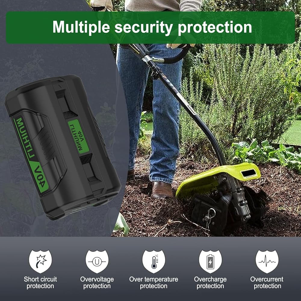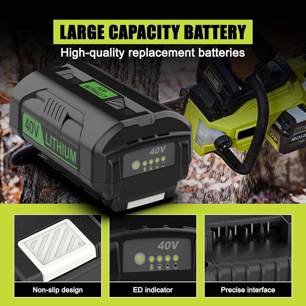 【بديلة Ryobi 40V بطارية وشاحن التحرير والسرد】 يعمل مع جميع أدوات Ryobi 40-Volt Lithium-ion. 40 فولت 6.5AH بطارية عالية السعة لوقت التشغيل الممتد. تقدم خلايا الليثيوم-أيون عالية الطاقة أداءً خاليًا من التلاشي. يضمن نظام السلامة الذكي المدمج حماية كاملة لك ولأجهزتك
