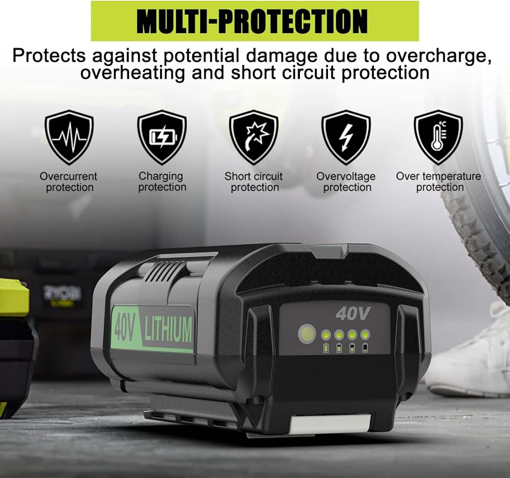 【النماذج المتوافقة مع البطارية】 استبدال بطارية Ryobi 40volt Lithium : OP4050A OP4015 OP4026 OP40201 OP40261 OP4030 OP40301 OP4040 OP40401 OP405001 OP40601. متوافق مع جميع أدوات الطاقة Ryobi 40V: RY40200 RY40403 RY40530 RY40204 RY40250 RY40402A/ R40402 RY40460 RY40180