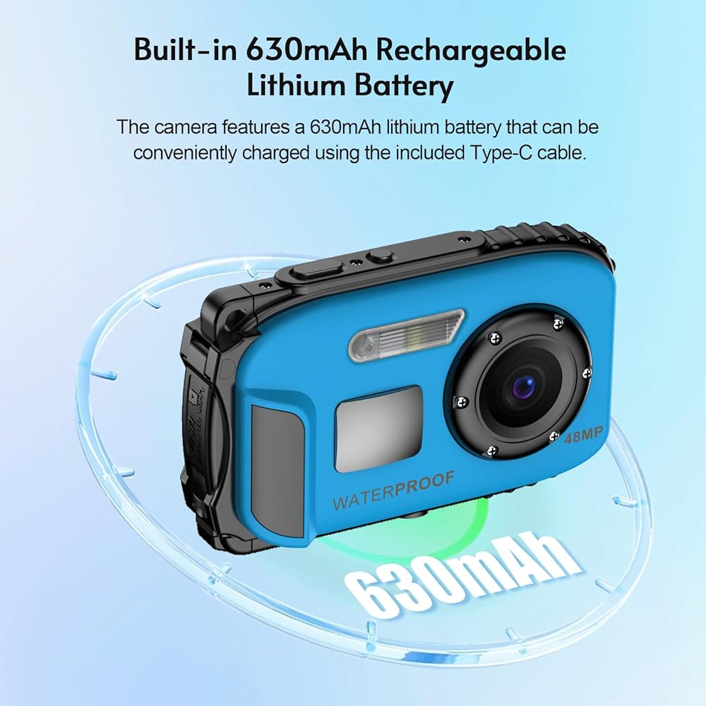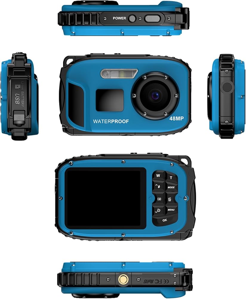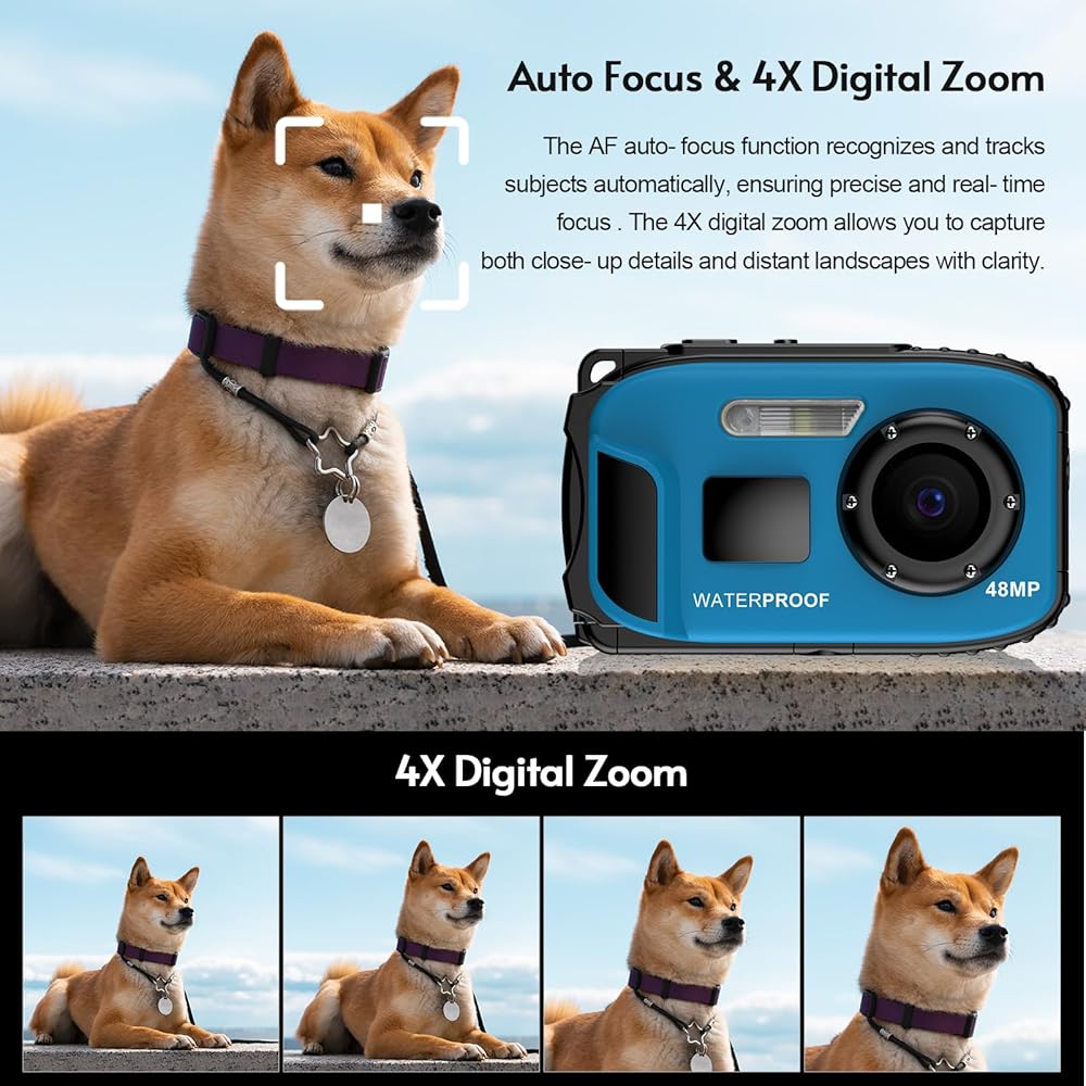 Andoer 1080P Waterproof Digital Camera 48MP Digital Video Camera 2.4 Inch IPS Screen IP68 5M Body Waterproof Depth Auto Focus 4X Digital Zoom Built-in Battery Birthday Festival Gift for Kids Boys Girls Students Teens