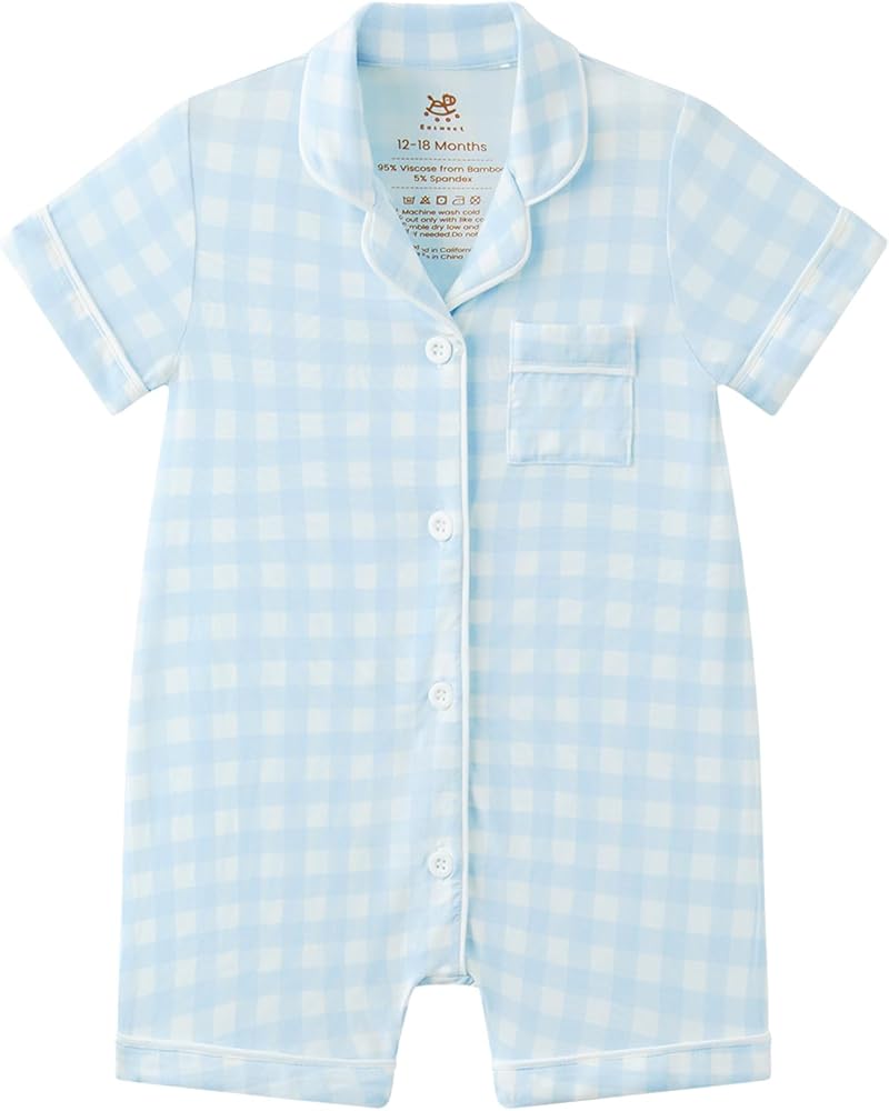 Stylish Design: This infant button down romper features a lapel, short sleeves, and a front pocket, making it both stylish and practical. The button closure of this baby girl pajamas ensures easy dressing and undressing