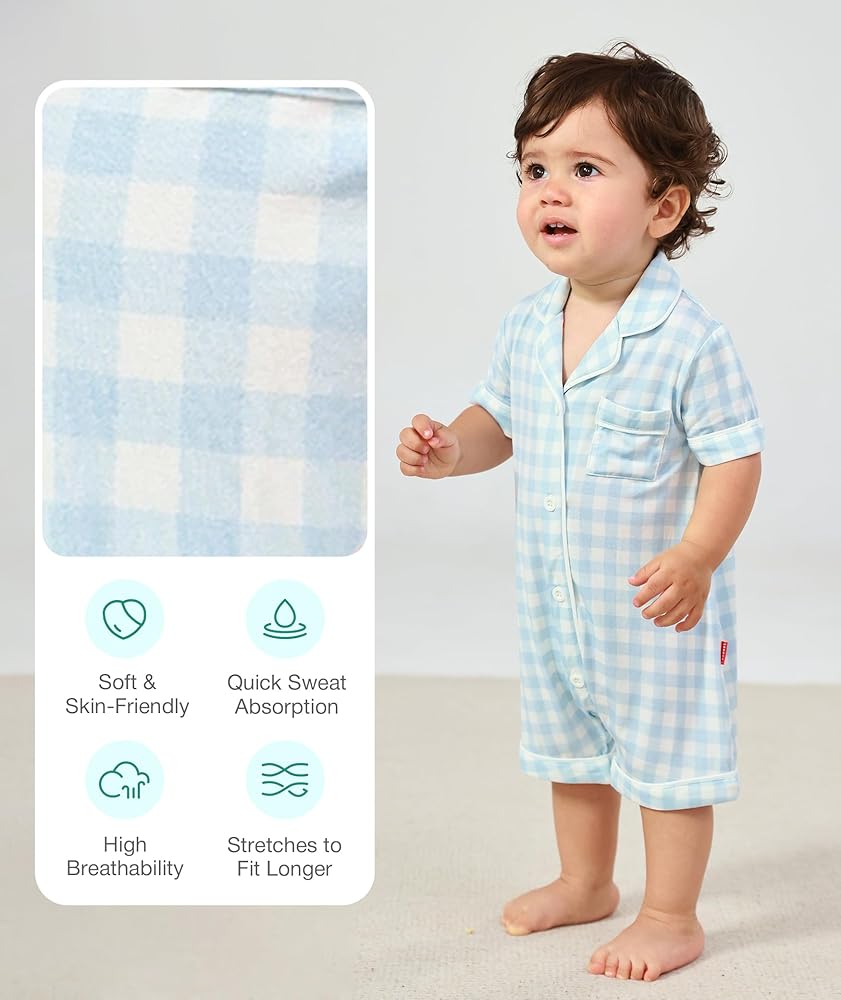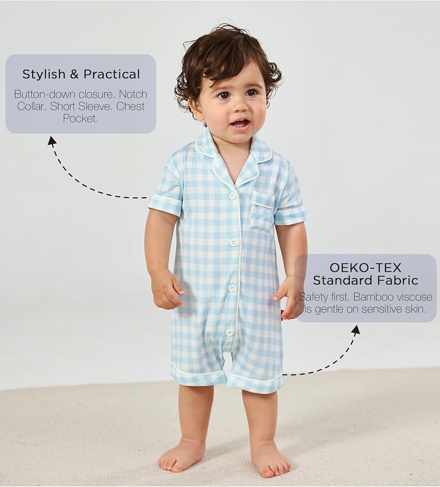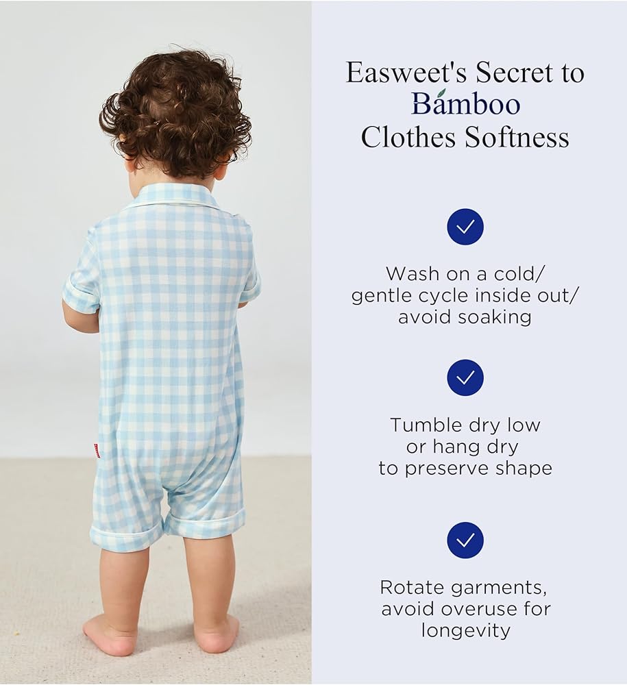 Breathable and Comfortable: Made from breathable and moisture-wicking bamboo viscose fabric, this baby jumpsuit keeps your little one stays cool and comfortable during the spring, summer and early fall seasons