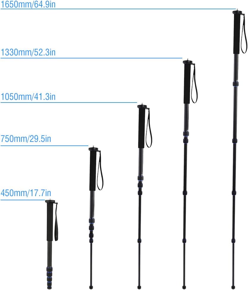 C 222 Monopod Monopod ، قصب تسلق الجبال تلسكوبية DSLR ، محمولة مع مقبض رغوة ، نظام قفل سريع ، 5 مقطع قابل للطي إلى 45 سم ، يمتد إلى 165 سم ، Lightweigh