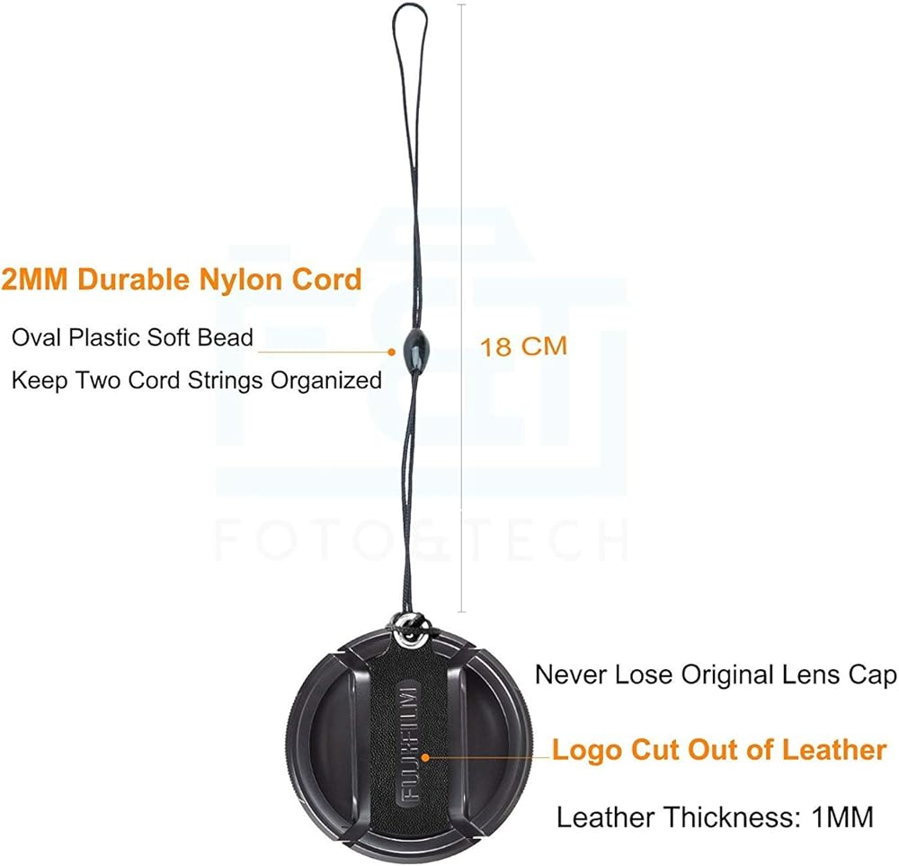 Foto&Tech Premium 2 Pack 72mm Leather Sticker Logo Cut out Camera Lens Cap Holder Keeper leash with 3M Adhesive Compatible with Fujifilm Camera Lens FLCP-72