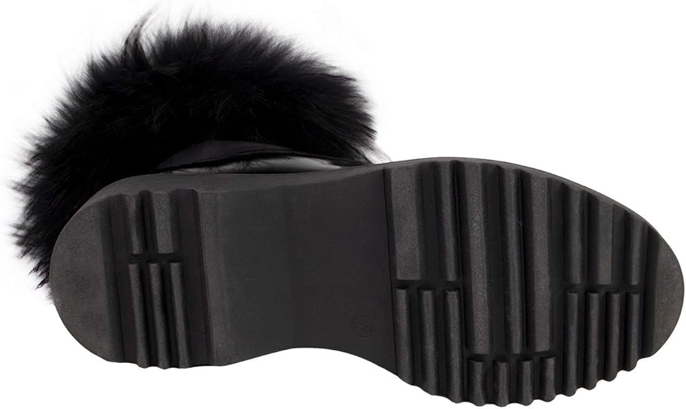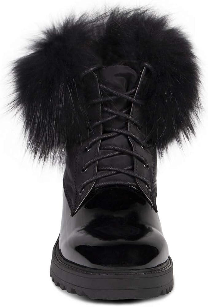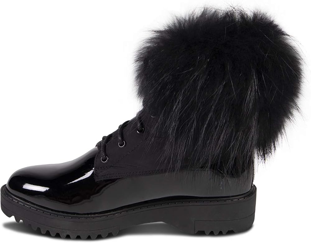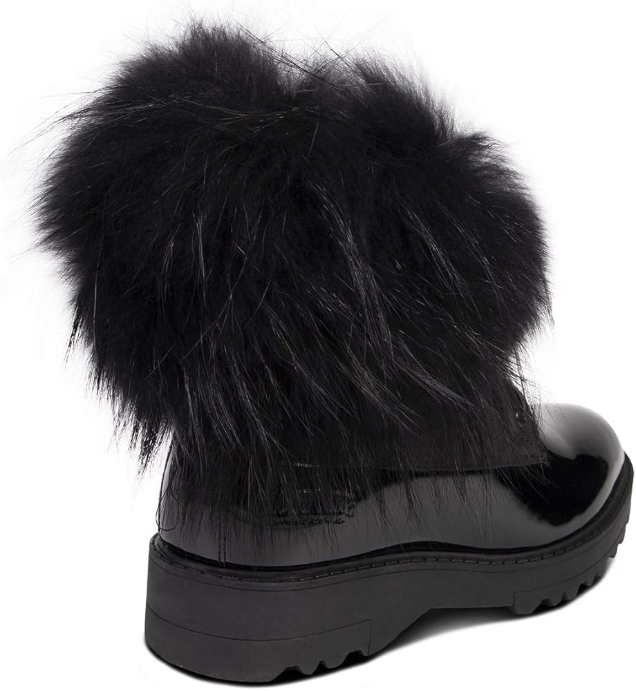 يأتي Brooke Boot في 3 نكهات - طوق فراء الراكون الطبيعي ، طوق فراء الراكون الأسود أو طوق جلد الغنم الأسود - في جميع أنحاء الجزء العلوي من جلد براءة اختراع لامع.