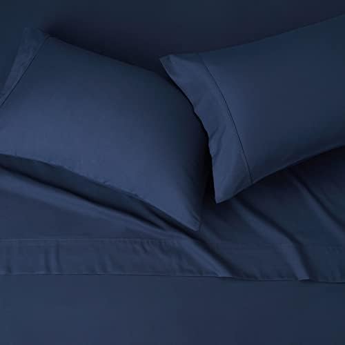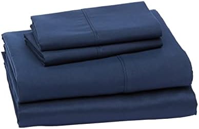طقم ملاءات سرير من الألياف الدقيقة خفيفة الوزن وناعمة للغاية وسهلة العناية من أمازون بيسكس مكونة من 4 قطع مع جيوب عميقة مقاس 14 بوصة، مقاس كوين، أزرق داكن، صلب