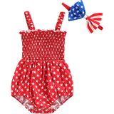 Independence Day Baby Girl Jumpsuit Set Summer Ice Cream Print Sleeveless Ruched Rompers and Stretch Headband