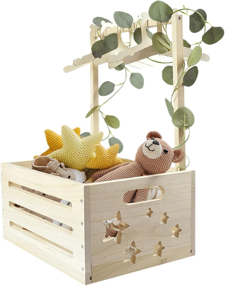 الحجم: يقيس منظم الصندوق الخشبي 13.4 × 8.9 × 6.7in ، ويقيس المقبض 12.2 بوصة. يوفر مساحة كبيرة لتخزين الحفاضات والملابس والألعاب وغيرها من الضروريات