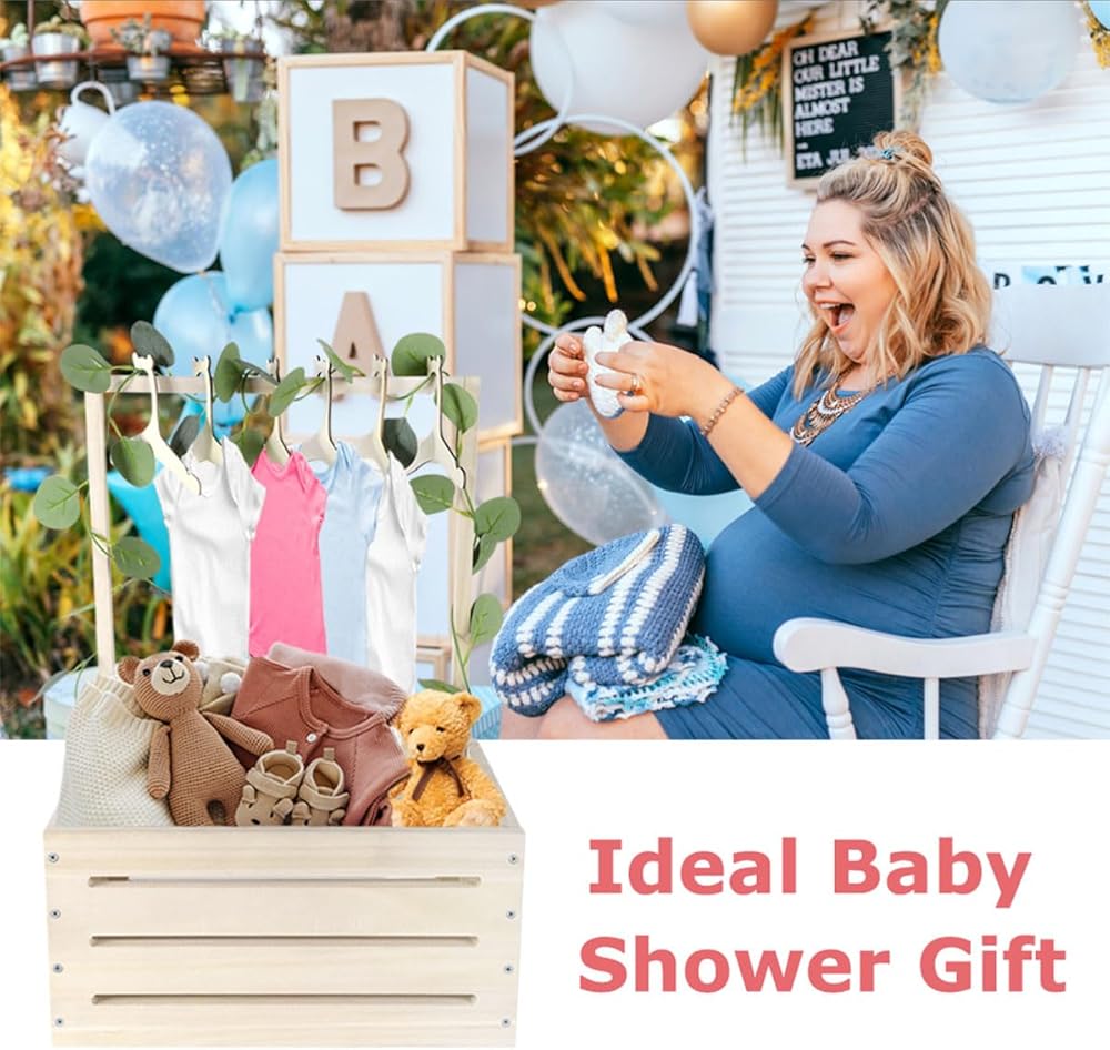 هدية استحمام الطفل: يتضمن صندوقًا خشبيًا واحدًا و 6 شماعات للأطفال و 1 أكاليل إكليل من الأوكالبتوس. هدية رائعة لمعمودية الأطفال ، مناسبة للبنين والبنات ، فقط أضف الملابس ، الحفاضات ، الألعاب ، إلخ. يمكن استخدام سلة هدايا الطفل لتعليق ملابس الأطفال وتخزين الأشياء الأخرى