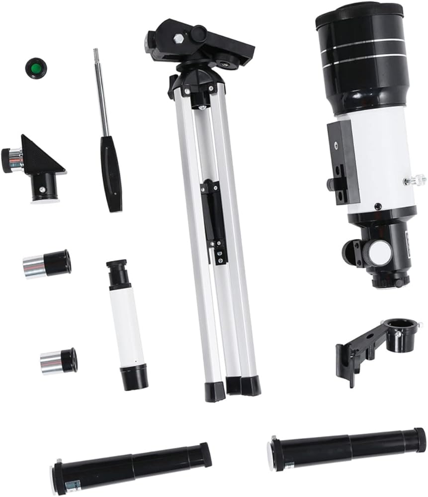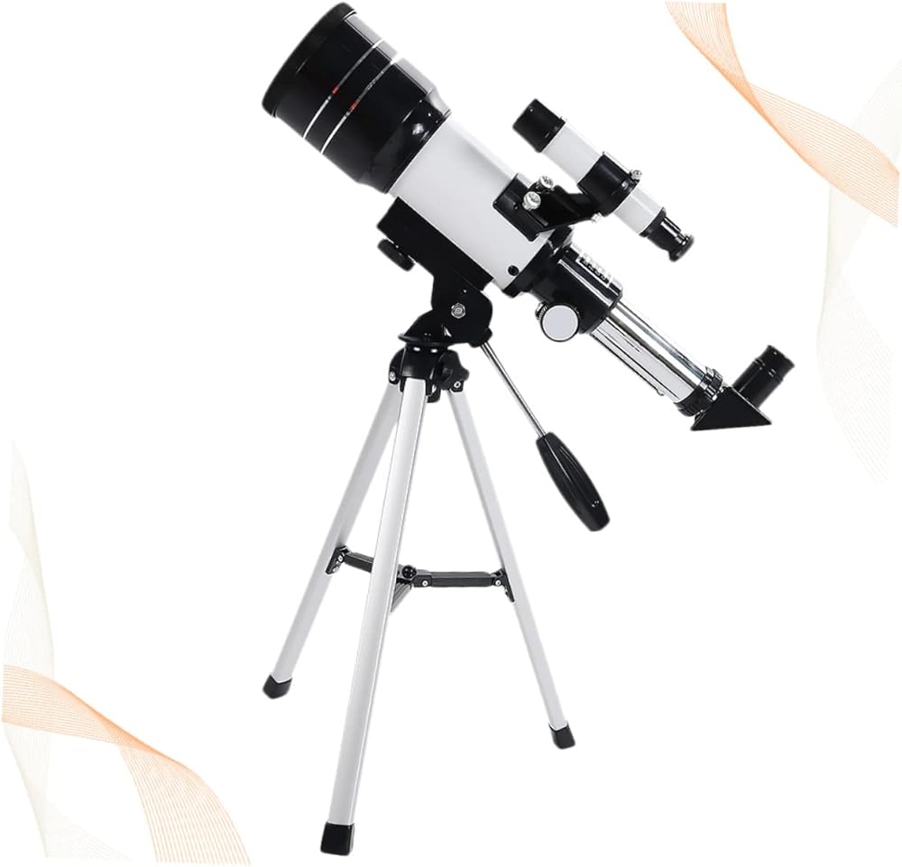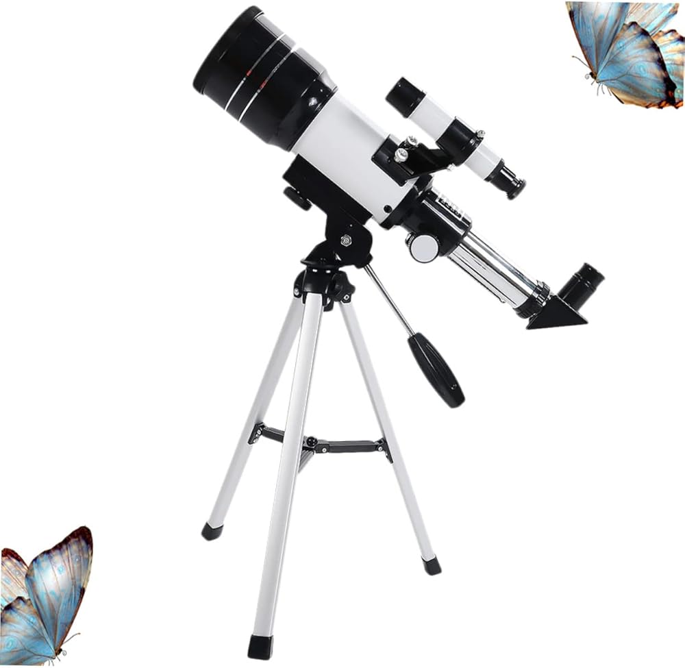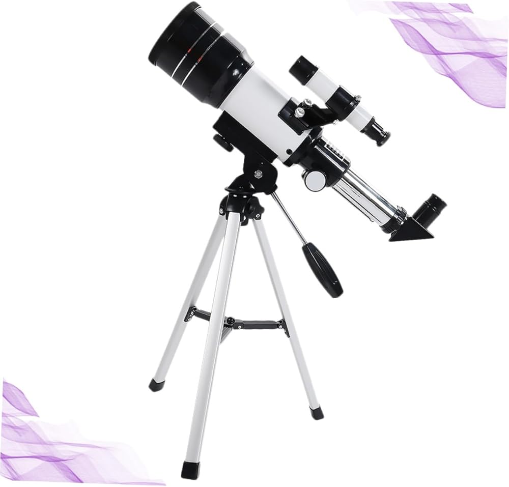 Adjustable Telescope Refractive astronomical telescope with 70mm aperture and 300mm focal length.Space Telescope Easy assembly with no tools required.Portable Tripod Coated glass optics for enhanced brightness and clarity.Astronomical Telescope Aluminum alloy construction, lightweight and portable, for beginning astronomer