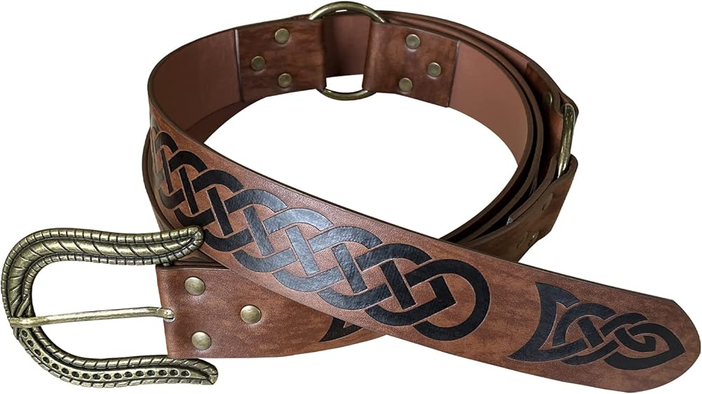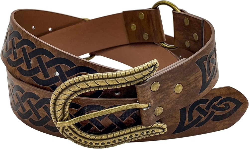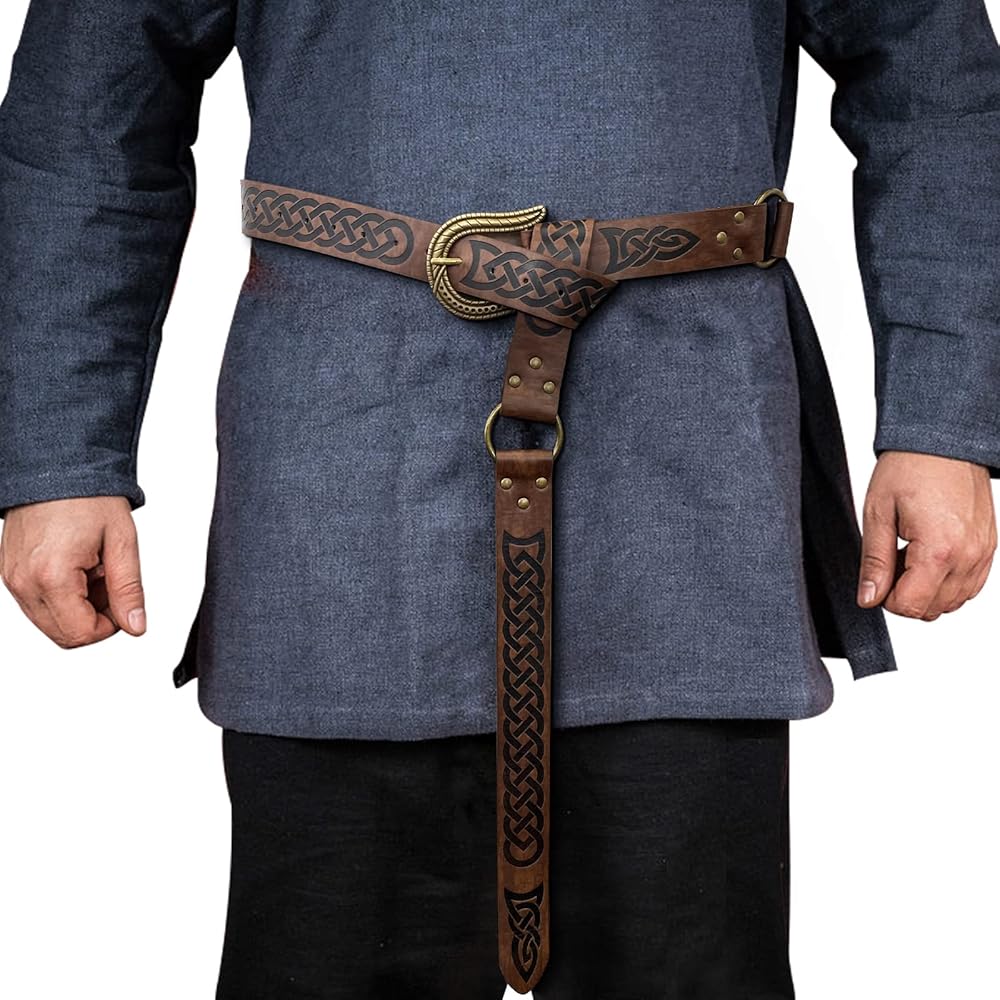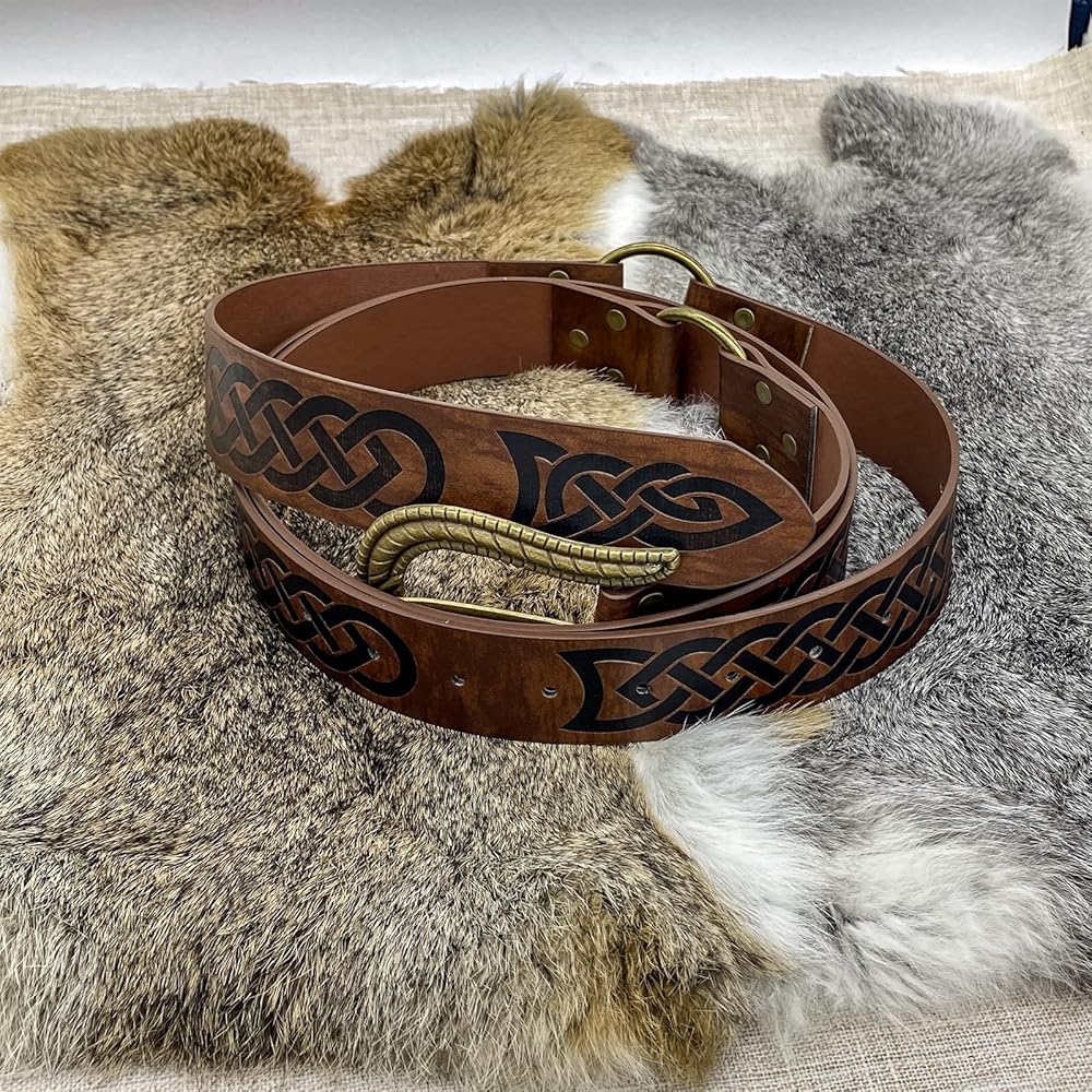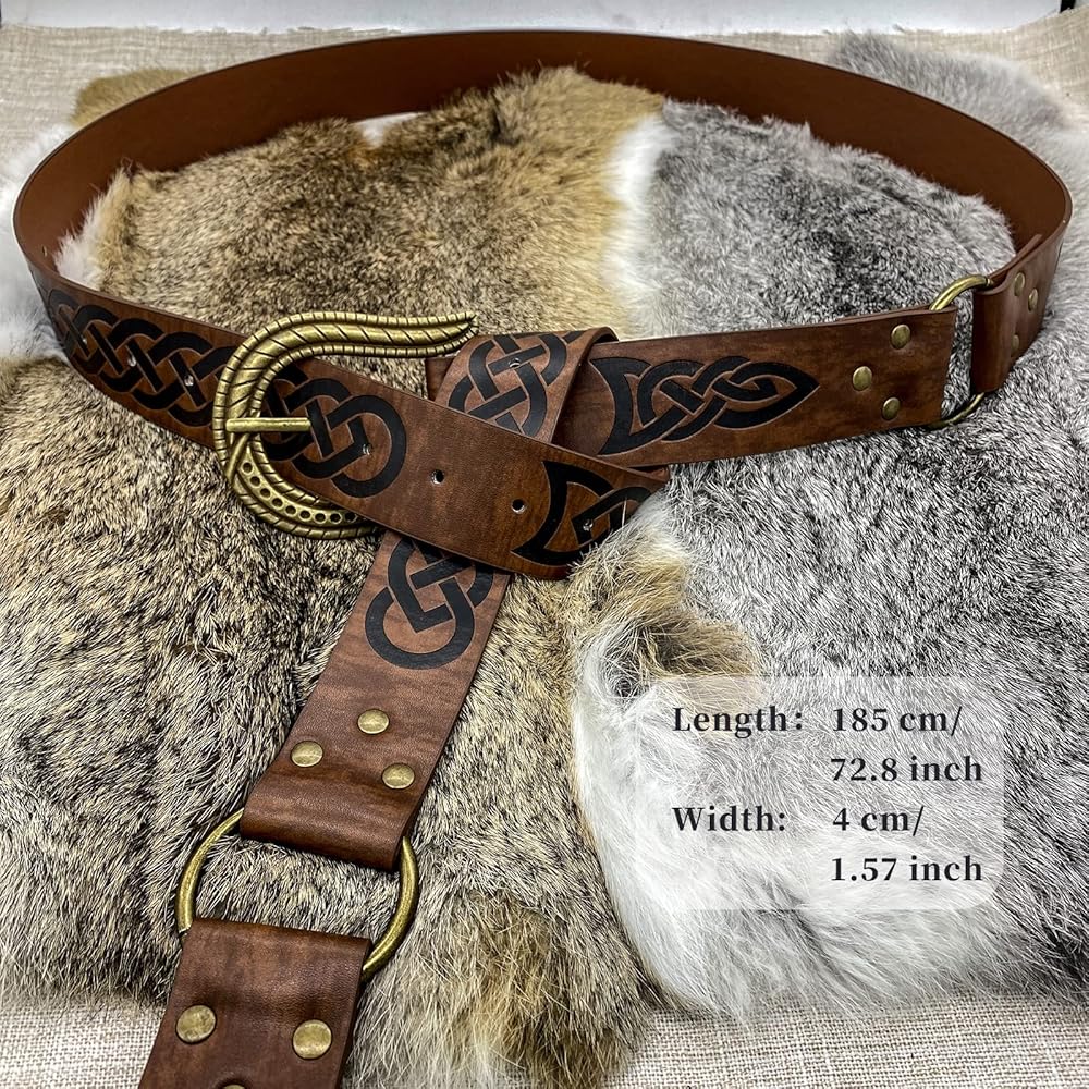 🌳 تصميم رائع للغاية - حزام بإبزيم من الجلد الصناعي المنقوش على الطراز الشمالي. تعيدك إلى عصور الفايكنج. سوف تكون الساتر في LARP وRen Faire. أعلم أنك ستحبينه كثيرًا، فقط لا تنسي خلعه قبل الذهاب إلى السرير.