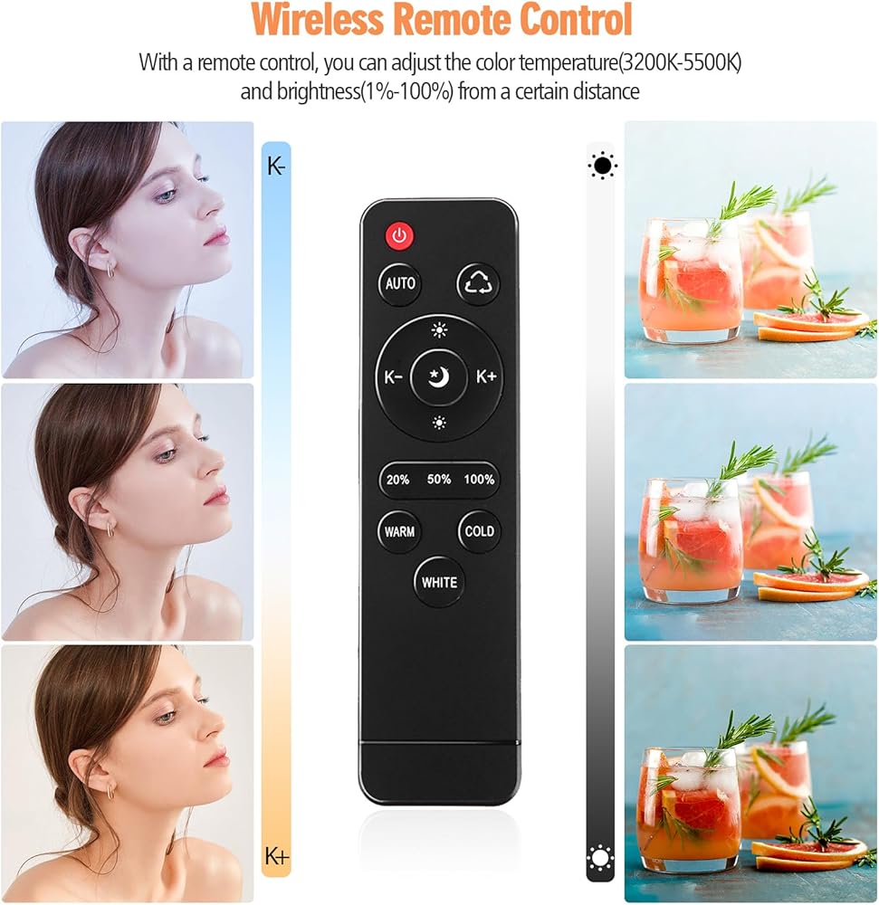 Remote Control:Comes with a remote control, you can adjust the color temperature(3200K 5500K) and brightness from a certain distance, very flexible and convenient to operate.