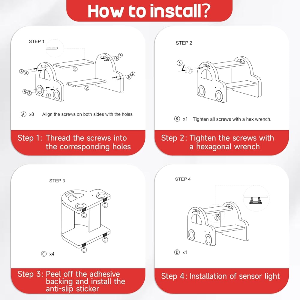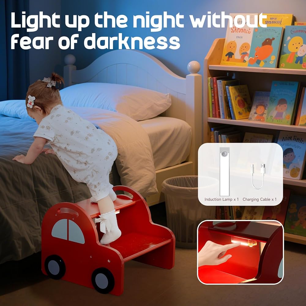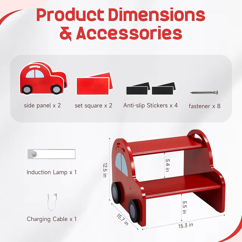 التصميم المثير للاهتمام على شكل سيارة: يتميز هذا البراز الخطوة ذات الألوان الزاهية على شكل سيارة حمراء بتصميم فريد وجذاب يثير خيال الأطفال. تضيف العجلات ثلاثية الأبعاد لمسة أنيقة عند مشاهدتها من الجانب ، مما يجعلها إضافة مثالية إلى أحواض الحمام أو أسطح المطبخ أو مناطق المرحاض أو أنشطة وقت النوم